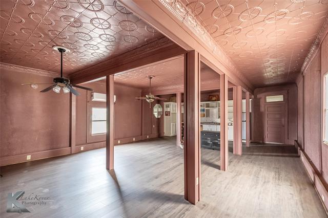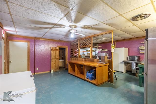 Located at the intersection of US Hwy 380 & Hwy 6, this property offers unbeatable visibility and versatility in a prime commercial location. The downstairs space—approximately 2,000 sq. ft.—is fully equipped and ready to operate as a restaurant, featuring a welcoming dining area up front and a commercial kitchen in the back with equipment included. With its open layout, this level could also be transformed to suit a variety of business ventures. Upstairs, you’ll find beautifully renovated living quarters with modern updates throughout. Highlights include fresh paint, newer flooring, an updated bathroom, and a stylish open-concept kitchen complete with refrigerator, stove, and microwave. The kitchen flows seamlessly into a spacious dining and living area, perfect for both comfort and entertaining. With 3 bedrooms and ample storage, this space is ideal for on-site living or as a rental opportunity. Whether you’re looking to launch your next business, invest in income-producing property, or combine work and home in one location, this property is truly move-in ready and full of potential.