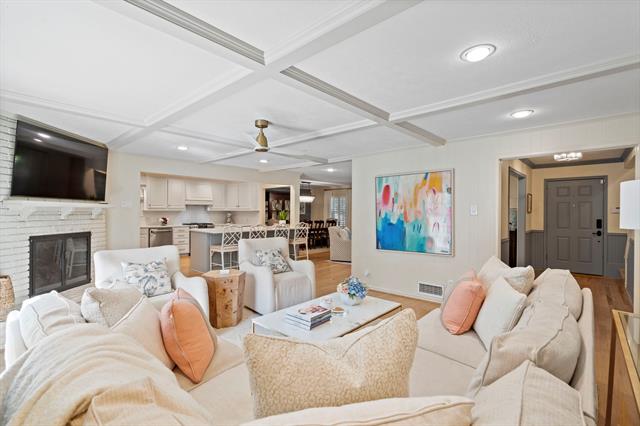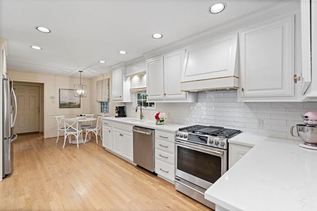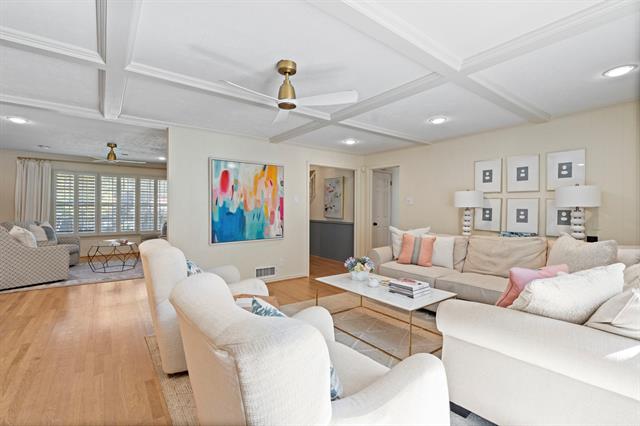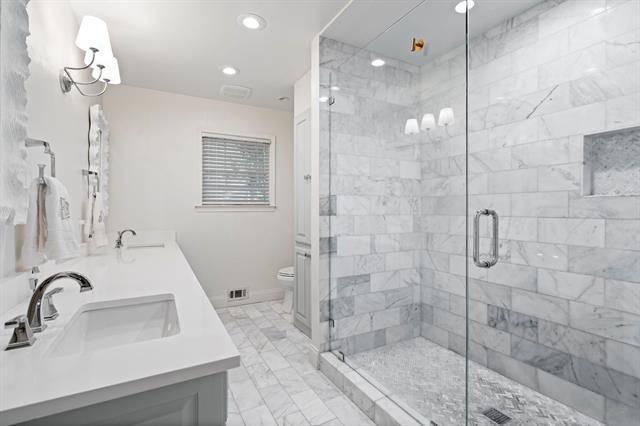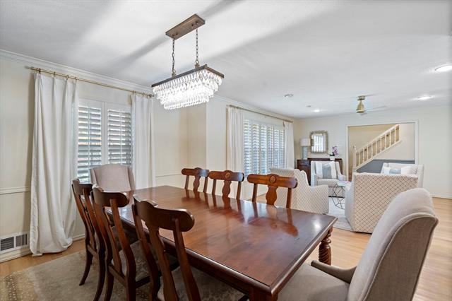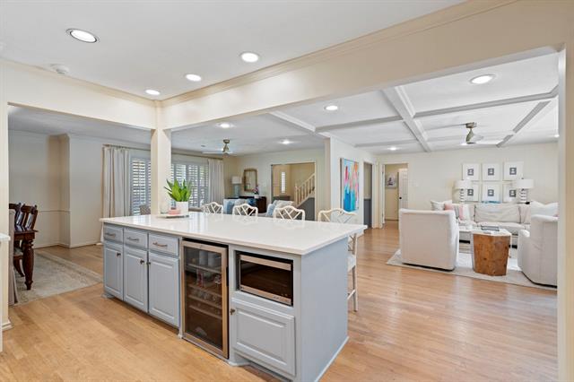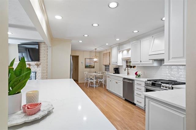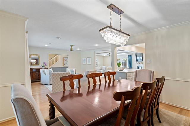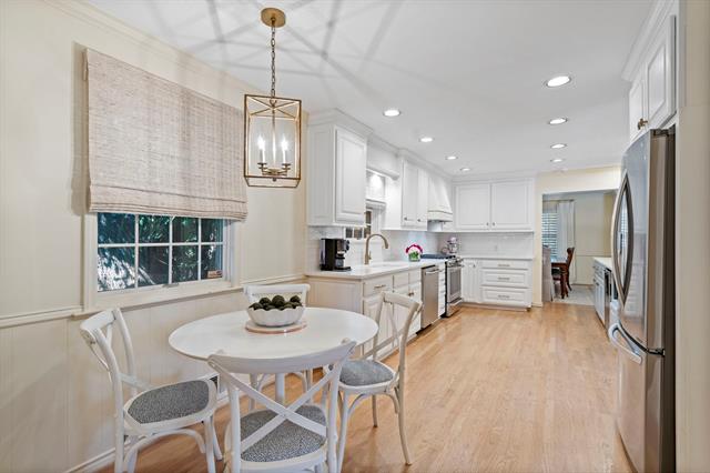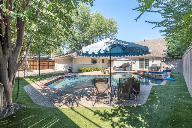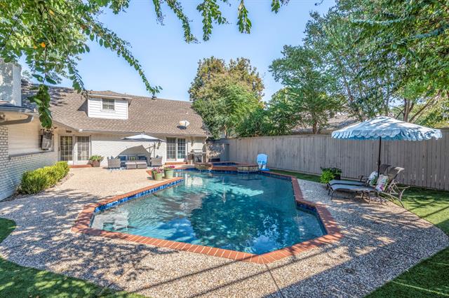 Stunning traditional in one of the prettiest neighborhoods in Lake Highlands! Situated in the middle of the block, this beautiful home is perfect. Open floor plan, gorgeous updates, gleaming hardwood floors and so much more. The open kitchen has custom cabinets, quartz counters, stainless steel appliances and a center island with room for bar stool seating. The formal living and dining areas are open to the kitchen and provide a great space for gatherings. The cozy den features a brick fireplace with a gas starter and also opens to the backyard. The spacious primary suite has a remodeled ensuite bathroom with 2 sinks and amazing finishes. The second bedroom downstairs could be a nursery, a study or another living space. The upstairs has 3 spacious bedrooms and another remodeled bathroom. The backyard oasis has a sparkling pool and spa, an open patio and artificial turf. This home feeds into award-winning White Rock Elementary and is just over a mile away from White Rock Lake. Come and see this amazing home today!