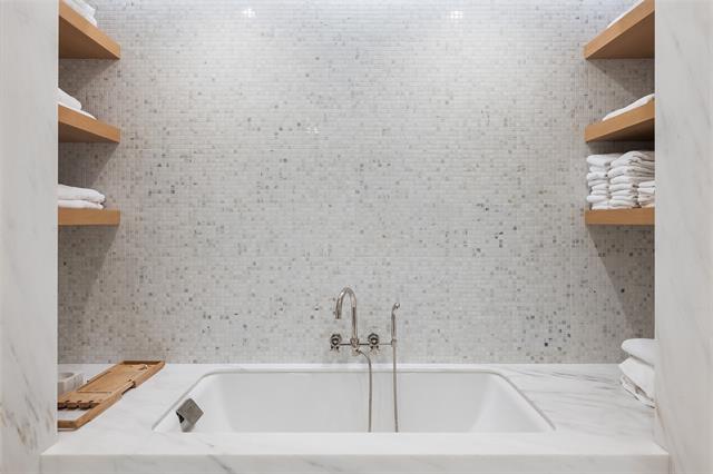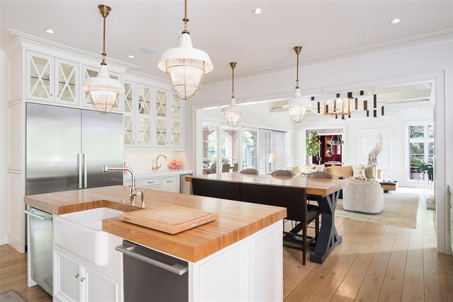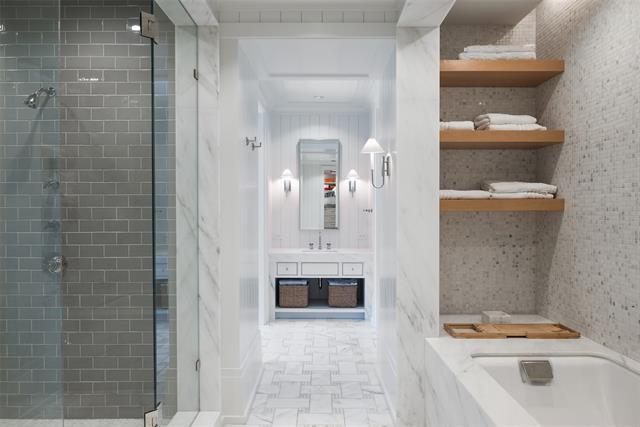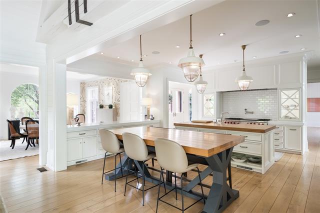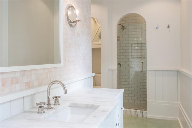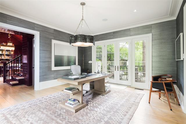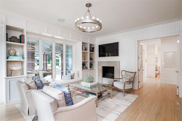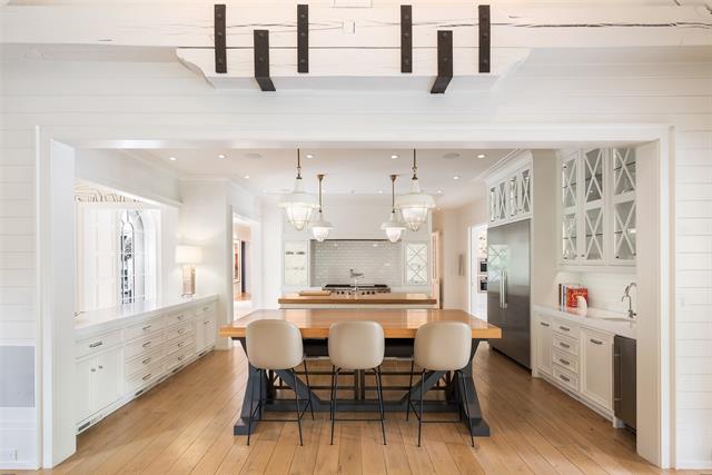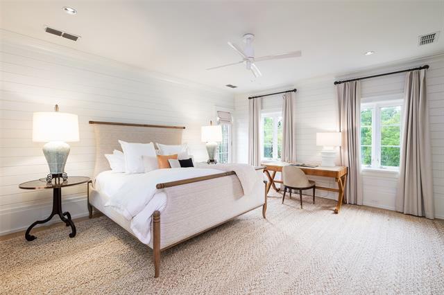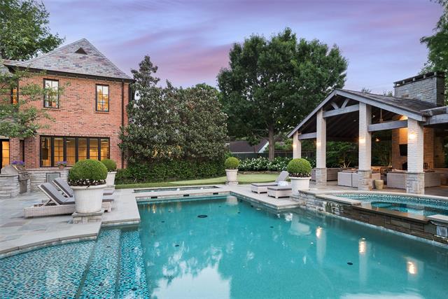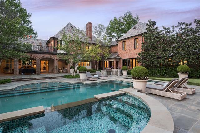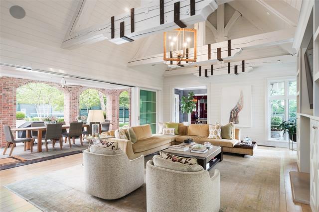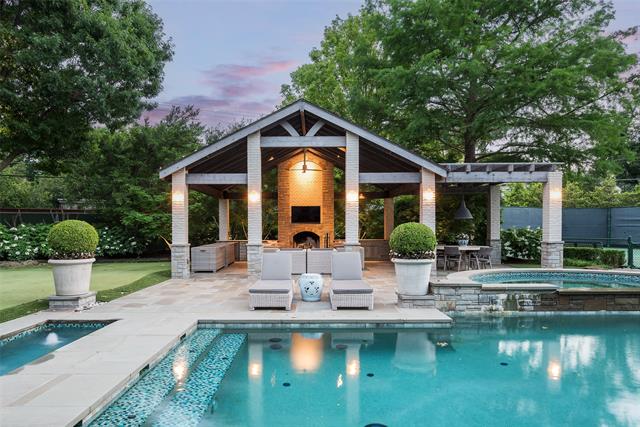 Set on an elevated 1.24-acre lot (where the original Murchison estate resided) within the ultra-private, gated and guarded community of Los Arboles, this Hamptons-inspired estate originally designed by Wilson Fuqua was completely transformed via a to-the-studs remodel circa 2017 by MORE Design + Build, by lead designer, Chad Dorsey, into a fresh vision of luxury. This exclusive enclave of just 31 estate homes is a hidden gem in Preston Hollow. With tree-lined streets, peaceful ponds, and a resort-like atmosphere, it’s hard to believe you’re only minutes from Dallas’ top private schools, luxury shopping, and world-class dining. The thoughtful floor plan seamlessly blends modern amenities with comfortable living. Six primary-sized bedrooms and nine baths unfold across five distinct living areas. The open-concept kitchen and family room serve as the heart of the home, with custom cabinetry, an incredible separate prep area with pocket doors, and sliding glass doors that open completely to your backyard oasis. Multiple access points lead to private balconies and outdoor living areas blurring the line between indoors and out. On the main level, you’ll find elevated designed spaces: a home office, media room, gym, and a moody speakeasy-style bar that is featured in Dorsey’s recent book, Relaxed Luxury. Just above a private guest suite with private entrance and balcony offer privacy for long-term guests. Upstairs, the primary suite feels like a private escape with a serene balcony overlooking the pond, dual walk-in closets, and a marble-wrapped bathroom. Four additional unique oversized en suite bedrooms round out the thoughtfully designed second floor. Outdoor living areas boasts a covered pavilion with a fireplace, separate screened in patio, a regulation lighted tennis court, putting green, pool and spa. This property features a 4-car garage with port cochere and additional parking pads for one of the best off-street parking arrangements in the development.
