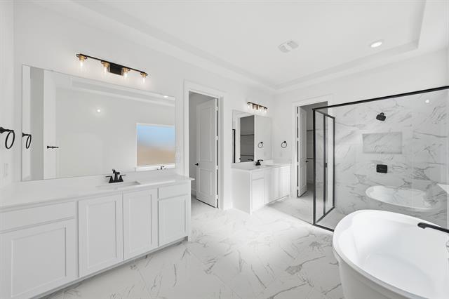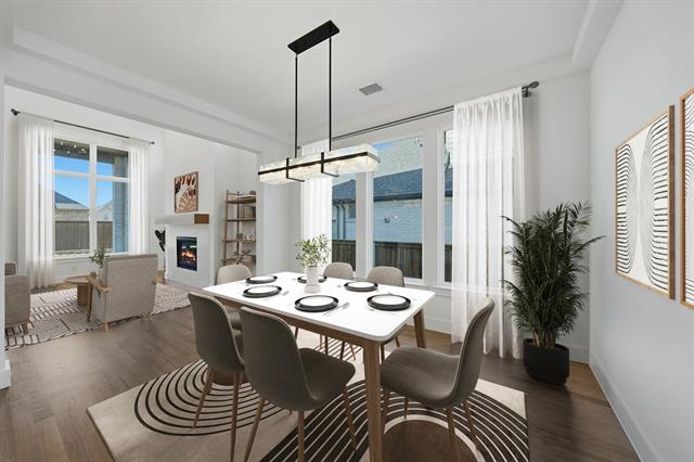 This brand-new luxury home, set on a corner lot with a three-car tandem garage, seamlessly blends timeless elegance with modern sophistication. The 5-bedroom, 5.5-bath residence features a media room and a soaring two-story family room with a fireplace and a wall of windows that fill the space with natural light. Nail-down wood floors flow through the main living areas, while plush carpeting adds warmth to the bedrooms, game room, and media room. The spacious primary suite offers a spa-like bath with a freestanding tub, oversized shower, and dual closets. The gourmet kitchen showcases custom cabinetry, upgraded appliances, and ample counter space, ideal for both everyday living and entertaining. Designed for comfort and versatility, this home includes generously sized bedrooms featuring a junior master suite, along with a dedicated raised study, game room, and media room, providing the perfect balance for hosting guests, working from home, or relaxing with family. Don’t miss this incredible opportunity!