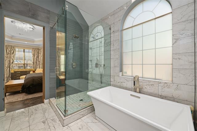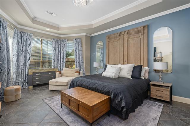 Tucked away in the exclusive gated enclave of Starwood, this stunning custom home has been meticulously transformed with premium updates throughout, blending timeless elegance with modern sophistication. The kitchen, fully remodeled in 2022, showcases new cabinetry, a farmhouse sink, a Scotsman ice maker, and a dedicated wine fridge - among other refined touches - with a new dishwasher seamlessly integrated in May 2025. In the living room, thoughtfully added shelving pairs with sleek Corian countertops and custom cabinetry. The spa like master suite, gutted to the studs and exquisitely remodeled in 2018, serves as a serene retreat. Complementing this, all bathrooms underwent comprehensive renovations in 2022, including updated plumbing (with the exception of the two upstairs bathtubs). Outside, the resort-style backyard beckons with a refinished Gunite pool from 2018 and an expansive 35-foot pergola. Professional landscaping, in 2017, graces both front and back yards, framing an elegant circular driveway that accommodates up to four vehicles with effortless grace. Two new AC units installed in 2022 and two hot water heaters were replaced in 2023. High end crystal lighting fixtures grace the entryway, master bedroom, and bathroom, while recessed lighting artfully enhances the formal living and dining rooms, as well as the kitchen. A newly installed 25-foot patio glass wall door in May 2025 floods the living room with abundant natural light, while elegant tile flooring extends seamlessly across the formal living and dining rooms, all bedrooms, and bathrooms. One bedroom stands ready as a dedicated gym, outfitted with resilient rubber flooring. Smart living is effortlessly integrated with Nest thermostats and camera system, and keyless entry at the front door. Starwood, a premier five-star community, provides residents with convenient access to acclaimed schools in the Frisco Independent School District.