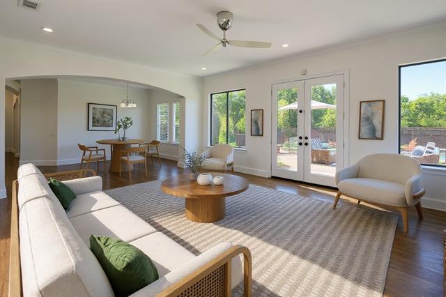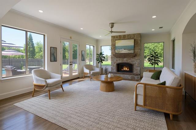 Situated on a rare double lot of just over half an acre, this beautifully updated home offers both space and elegance in the gated community of The Lakes of Legacy. From the moment you enter, a sweeping redesigned staircase makes a striking first impression, enhanced by all-new flooring on the staircase and throughout the upstairs, new carpet, and fresh paint carried through the entire home. The updated spa-like primary bathroom is a true standout, featuring a brand-new freestanding tub, an oversized shower, and refined finishes that create a luxurious retreat. The floor plan is equally impressive, with a dedicated office on the main level, a second living room upstairs, and three generously sized bedrooms on the upper floor, offering both functionality and flexibility for modern living. Outdoors, the property truly shines. A sparkling pool with a tranquil water feature anchors the expansive backyard, framed by lush grass and a tree-lined backdrop. The oversized lot provides ample space to add a tennis court, sport court, or playground while still leaving room to relax and entertain. At the front of the home, tranquil pond views further enhance the picturesque setting, blending natural beauty with everyday convenience. A rare combination of exceptional lot size, thoughtful design, and modern updates, this property delivers luxury living inside and out. Ideally located just 5 minutes from The Star in Frisco, residents can enjoy award-winning restaurants, premier shopping, and year-round entertainment right at their doorstep.