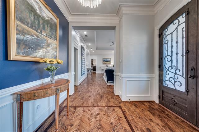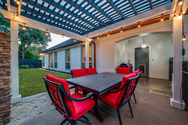 Located in the prestigious, guard-gated golf course community of Stonebriar Village, this stunningly updated, single-story, custom home offers 3,500 square feet of move-in ready, low-maintenance luxury on an oversized, elevated corner lot with mature trees and established landscaping. Custom, iron doors open to light-filled interiors tastefully refreshed with soothing designer paint palette, real hardwood floors, refined millwork (they don’t make them like they used to), designer lighting and a flexible, spacious floor plan. Walls of floor-to-ceiling windows bathe the open-concept layout in natural light. The remodeled gourmet kitchen is both elegant and functional, featuring marble countertops, designer backsplash, crisp white cabinetry, and premium LG Signature Series stainless steel refrigerator, ovens, microwave, wine chiller, induction cooktop and dishwasher. The kitchen flows effortlessly into the inviting living room with fireplace and a bright breakfast nook. The private primary suite offers a peaceful retreat with a sitting area and luxurious split his-and-hers baths showcasing marble vanities, a jetted soaking tub, remodeled walk-in shower with seamless glass, and custom closets. Additional spaces include the stately, formal dining room, dedicated formal study with fireplace and sliding doors to a charming, covered morning porch, as well as a versatile bonus room ideal as a media or game room, second study, or creative space. Outdoor living is equally inviting, with a flagstone patio and pergola perfect for relaxing or entertaining. Thoughtfully upgraded with modern systems for comfort and efficiency, along with substantial exterior improvements including a Class IV impact-resistant roof, new skylight, gutters, garage doors, and refreshed landscaping. An additional benefit is an assumable VA loan with a 2.5% fixed interest rate on a 30-year term, available to another eligible veteran – an outstanding financing advantage in today’s market.
