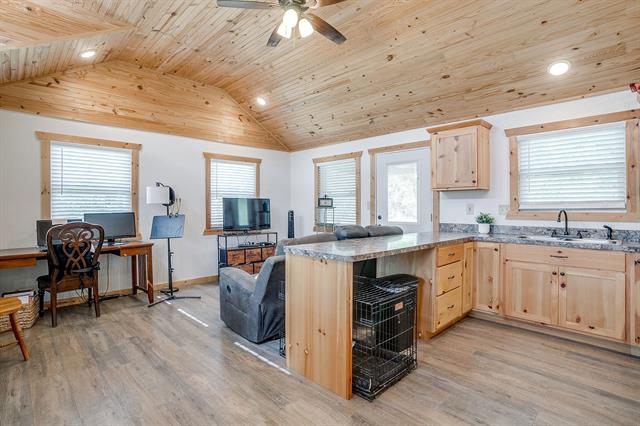 Seller is offering assistance with Closing costs or Rate Buy Down!!! Nestled on 8.03 acres of AG Exempt land, this picturesque property is peaceful and beautiful. As you enter the property you will be captivated by the sight of mature oak trees that provide ample shade. Step inside the 4 bedroom and 2 bath home. This house has an open concept that is flooded with natural light, showcasing a country style kitchen with an open floor plan. The wood accents on the ceiling are absolutely gorgeous. Windows have been updated. There is an approximately 533 Square Foot (26 x 21) addition. This addition is a clean slate that has endless possibilities be it a Living Room, Den, Game Room, or large Master Suite. This addition also contains an upstairs loft area that could be an office or used for additional storage. The perimeter of the property is fenced and cross-fenced making it ideal for housing & grazing farm animals. There is a barn, stock pond and small peach orchard on the property. This property also has a large chicken run for those looking to produce their own fresh eggs. There is a large covered back porch for entertaining and covered parking. Do you need additional living space? Step inside this cozy 640 Sq Ft guest house. You will be greeted by an inviting open floor plan that maximizes every inch of space. This home offers 1 Bedroom, 1 Bath with wood accents throughout and utility room for a washer and dryer. There are also front and back covered porches where you can watch the wildlife meander along the tree lined property. This little house contains its own electrical meter making it perfect for multi-generational living or it could be used for additional rental income.