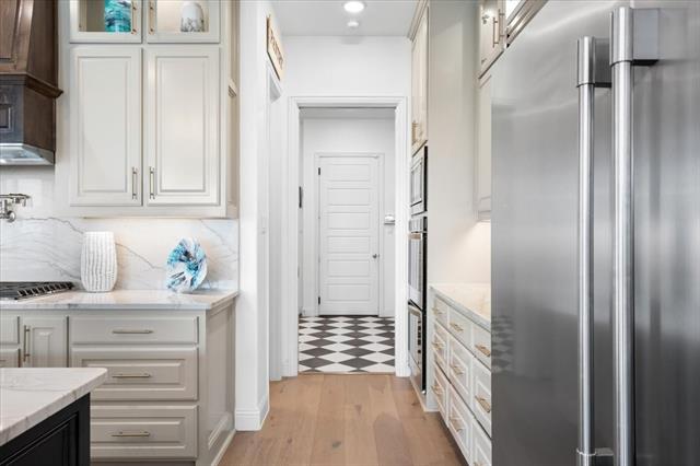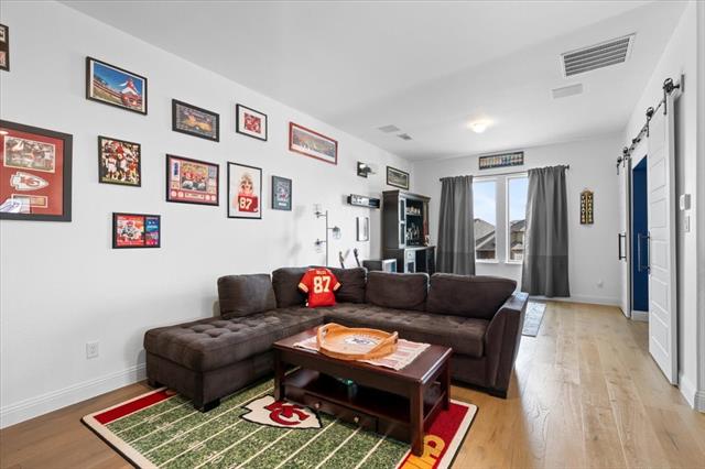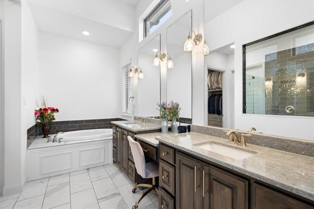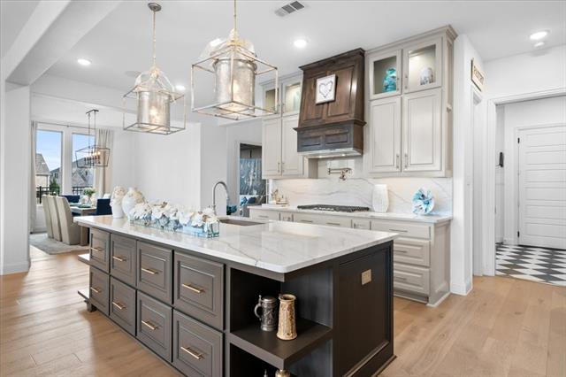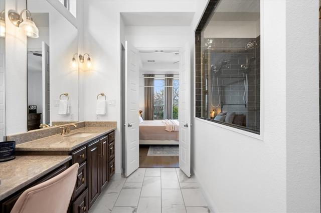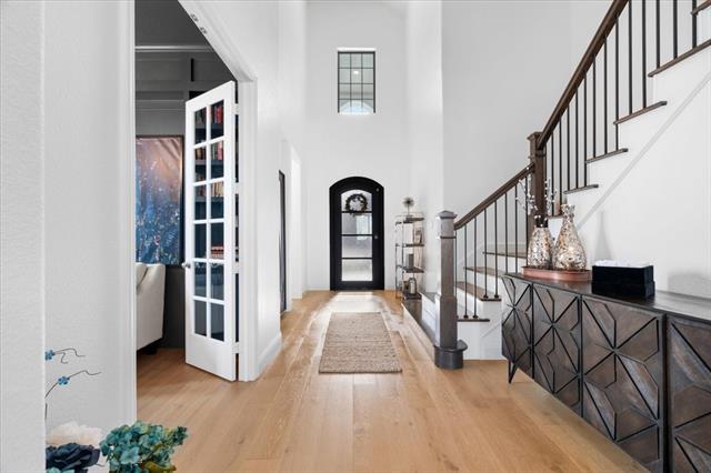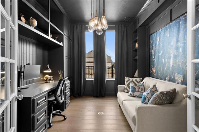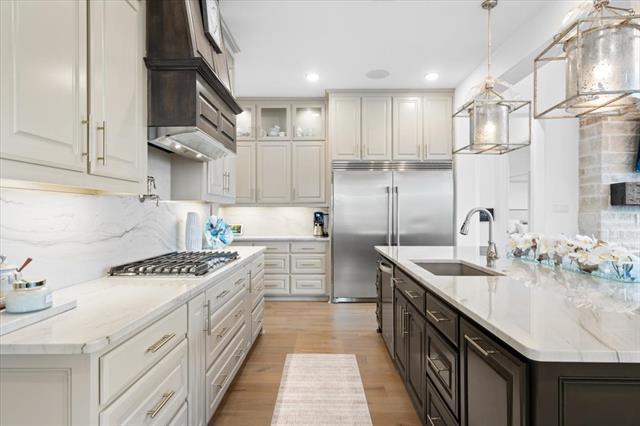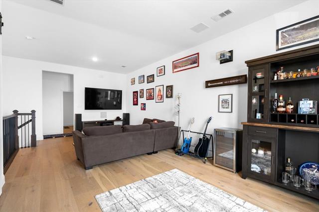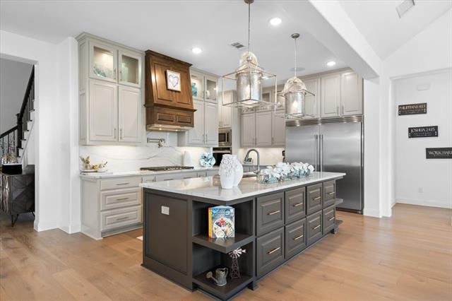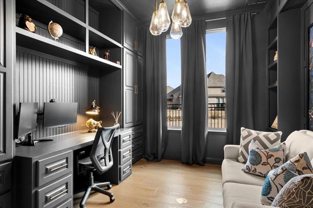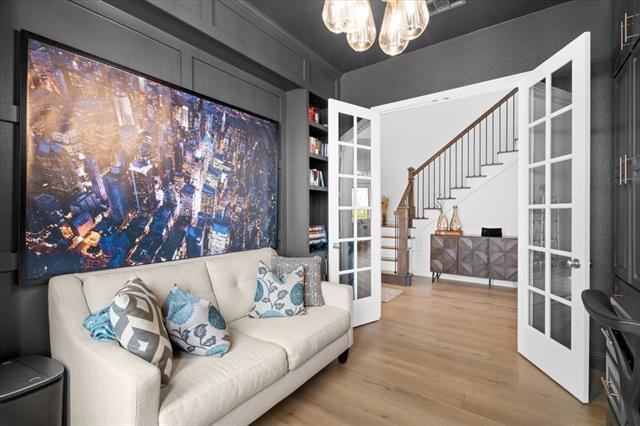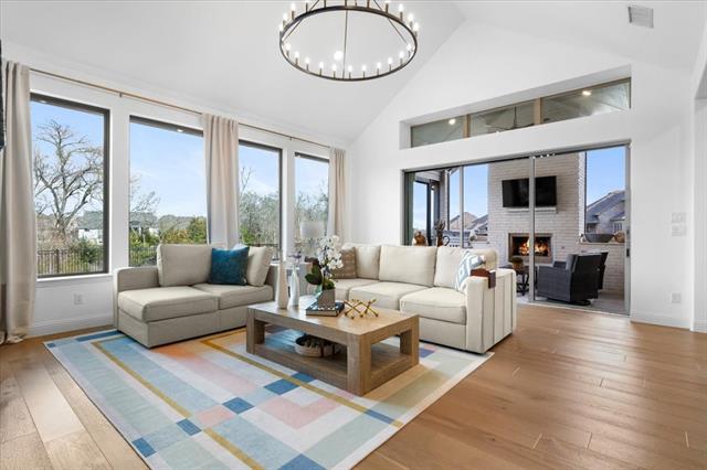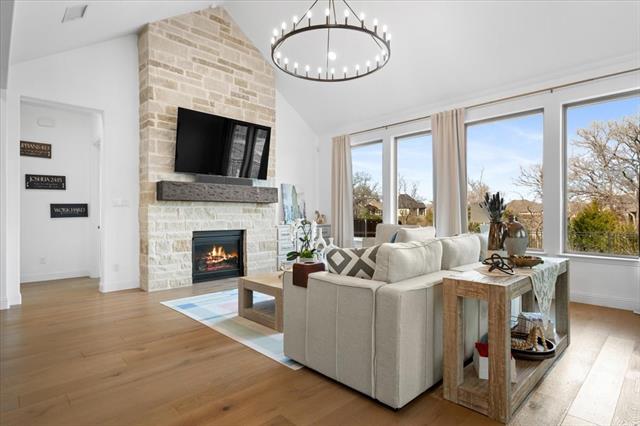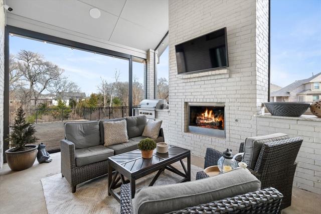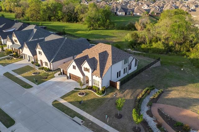 The Crown Jewel of Trinity Falls – Nestled on a serene, wooded creek lot adjacent to a picturesque park, this stately Drees custom home is a perfect blend of luxury and lifestyle. The striking exterior sets the tone for the elegance inside, where you’ll find a beautifully appointed home office with French doors and custom built-ins. The formal dining room and open-concept living area flow effortlessly together, making it easy to host everything from intimate dinners to lively gatherings. At the heart of the home lies a chef’s dream kitchen with quartzite countertops, a large island, double ovens, pot filler, 5-burner gas cooktop, microwave, built-in fridge, custom cabinets, beverage center, and spacious pantry. The family room impresses with soaring ceilings, a dramatic stone fireplace, and expansive windows showcasing tranquil creek views. Expansive glass sliders reveal a patio with a motorized screen—an exquisite setting for entertaining or al fresco dining beside the elegant fireplace and built-in grill. The primary suite features a sitting area, ensuite bath with marble vanities, soaking tub, oversized shower, & custom WI closet. Upstairs offers two additional bedroom suites, a game room, and a state-of-the-art media room. Wide-plank wood floors grace both levels. A generous laundry and mudroom lend added convenience. The oversized three-car garage offers epoxy floors, built-in shelving, a side door, and integrated sound. Residents of Trinity Falls enjoy resort-style amenities including pools, trails, parks, The Lodge fitness center, and an on-site elementary school. Just minutes away, historic downtown McKinney invites you to explore over 120 curated boutiques, fine dining establishments, and cultural attractions—effortlessly blending charm, sophistication, and accessibility. Now is your chance to enjoy the finest in resort-style living just minutes from historic downtown McKinney.