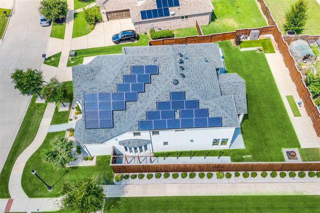 Beautifully Updated Drees Home Situated on an Unbelievable Oversized Corner Cul-de-Sac Lot Located in the Highly Sought-After Windsong Ranch. This amenity-filled community is renowned for its crystal-clear Lagoon, pickle ball courts and award-winning lifestyle program. Recently renovated in 2024 and priced below the appraised value, this immaculate home features fresh interior and exterior paint, a brand-new roof, and newly painted cabinetry throughout. Fresh white oak nailed-down wood flooring, installed in July 2025, elevates the open, airy layout filled with natural light and modern finishes. Open concept kitchen with ample storage opens to 2 story family room with walls of windows overlooking backyard. The main level includes a private guest suite, a spacious primary retreat with ensuite bath and spacious walk-in closet, and expansive living areas designed for both entertaining and everyday living. Upstairs, enjoy a generous game room and a fully equipped media room with 7.1 surround sound, built-in HD projection screen, and pre-wired connectivity perfect for movie nights or game-day gatherings. Thoughtful upgrades include an owned 10kW Tesla solar panel system, smart thermostat, new water heater, and energy-efficient features throughout. The oversized backyard offers ample space for a future swimming pool, a covered patio, lush green space, and a newly stained 8-ft privacy fence ideal for outdoor living. Located within Prosper ISD and less than 3 miles from the PGA and and 6 miles from the highly anticipated Universal Studios for Kids, Windsong Ranch is Prosper's most prestigious master planned community offering abundant amenities such as trails, sports courts, pools, a café and award winning on-site Elementary.