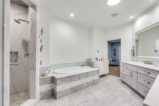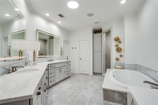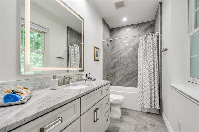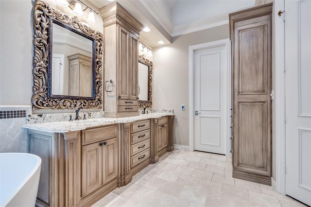 Multi Generational Living! UNIQUE zero lot line in the lovely Stonebriar Village, a gated and guarded community with TWO PRIMARY suites & TWO STUDIES AND MANY HIGH END FINISHES with many added features and updates. Second floor was completely remodeled in 2023. The second story primary bath features quartz countertops, lighted mirrors, cermanic tile flooring, a large walk in shower, garden tub, and a linen closet. This primary suite also includes a huge closet (measures 12 x 10). Additionally the suite has hardwood flooring, a separate office with a wall of builtins and shelves above, and 155 sq feet of a sunroom that makes a great TV or sitting room with incredible views of tons of trees and creek area. Don't miss upstairs guest room. It has a ensuite bath with lighted mirror and quartz! First floor primary has been remolded in 2019 with granite countertops, a tower, dual sinks, free-standing elegant tub, a custom closet, and a large walk in shower! Heated flooring in both primary baths! Chef's kitchen with extended island, granite countertops, Viking Appliances, double ovens, a built-in subzero refrigerator, a large walk in pantry, and a reverse osmosis water filtration system. The wrap around breakfast bar seats up to 5 people. Large breakfast room that views the resort style outdoor living area is open to the family room! Formal study (or could be 4th bedroom) with adjacent full bath, french doors, closet, a wall of built ins. No carpet in this great home, hardwood floors and ceramic tile throughout. Great wine storage with wine cooler. Two attics with walk in storage. Security and Sprinkler systems! Double garage has epoxy flooring, and custom cedar door. Extensive landscaping with stone borders. A whole house Generac generator, a Culligan water softener system, and a Moen water safety system stay with the home. Seller prides in taking care of the home. AGENT IS THE SPOUSE OF THE SELLER.