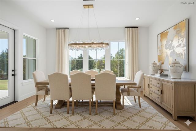 Experience the perfect blend of European elegance and American comfort in this uniquely designed home, set on a rare, tree-lined lot. Crafted by a European designer with meticulous attention to detail, the interiors radiate harmony through light, earth-toned palettes, soft textures, and timeless finishes. French oak hardwood floors, Calacatta quartz countertops, and marble tiles complement premium lighting from Arhaus, West Elm, and Pottery Barn, while champagne bronze Delta fixtures add a refined touch throughout. The open-concept family floor plan is designed for modern living. Sun-drenched living spaces feature oversized windows framing serene views, a gas RealFlame fireplace, custom white oak shelving, and a statement chandelier, blending elegance with a warm, inviting ambiance. The oversized kitchen is a chef’s dream: an oversized island with seating for eight, Calacatta Mia quartz countertops and backsplash, Bianco farmhouse sink, top-of-the-line KitchenAid appliances, and custom LED-lit cabinetry create a space that’s as functional as it is beautiful. The primary suite is a private retreat with expansive views, walk-in closet, and a spa-inspired bath with a freestanding Roman tub, Bianco Carrara marble shower, double vanity, and matching high-end fixtures. Generously sized secondary bedrooms and baths, a thoughtfully designed laundry and mudroom, and custom storage elevate everyday living. Every detail of this home—from spray foam insulation and tankless water heating to electric-car-charging preparation—reflects sophisticated, thoughtful living. Outdoors, the home is prepared for a pool and outdoor kitchen, with lighting, landscaping, and a circular driveway enhancing its curb appeal. Located in an active, vibrant community with events like classic car exhibitions, dance parties, and festive celebrations, this home offers a lifestyle that seamlessly combines luxury, comfort, and connection.