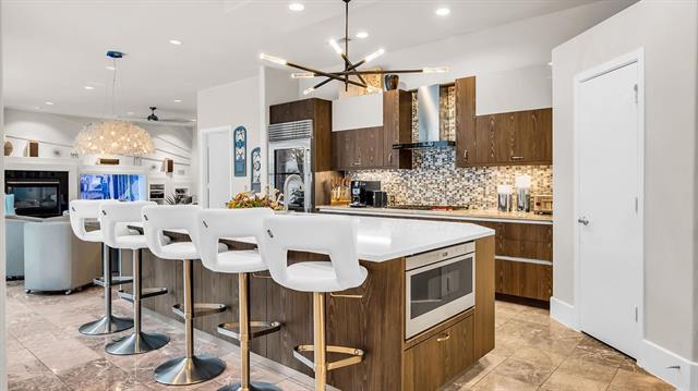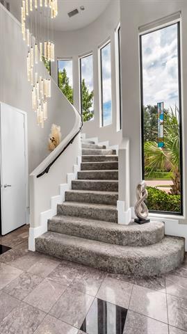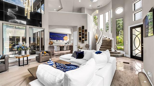 There is but one word that describes this truly one of a kind custom built home, and that is... Lifestyle. You are stepping into a new life of excellence and the theme of three that carries through this well thought out design. So many improvements made with care and taste have been applied to bring out the very most in custom textures, natural stone counters, imported cabinetry, over $250,000 in home automation with studio quality audio, and 4K video! The kitchen is nothing short of magnificent with a built in glass front Sub Zero refrigerator, Wolf gas five burner gas cooktop, dual Asko dishwashers, dual beverage coolers, double oven, roll out micro, Italian cabinetry, Canadian quartz center island measuring 10x5 allows for more than ample bar seating. The primary bedroom has the greatest views pool area. Ceiling to floor windows allow natural light and amazing views. The primary en suite bath has been reimagined with huge walk in shower wrapped in Italian tile, and glass surround. The primary closet is a room all its own with built ins, storage, and space to move around. The downstairs guest suite should not be missed with built in bar, separate entrance, and direct pool access will spoil your most special visitor. The absolute grandeur of the backyard is truly resort style living with waterfall spa, island in the center of the pool, with outdoor cooking station and bar. The entry foyer towers with two story ceilings open to the breath taking formal living and dining areas with the walls of glass pouring in the light. Make your way upstairs to the entertainment level with open living area with bar and views of the backyard. The Media room will keep you out of the theater without a doubt with the most impressive cinematic you will experience anywhere! The gated motor court has three car tandem garages, with extra parking and circle drive. So many great things to see and live in the absolutely beautiful home, you must experience yourself. Be the one who says yes!