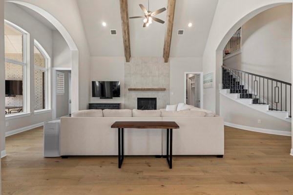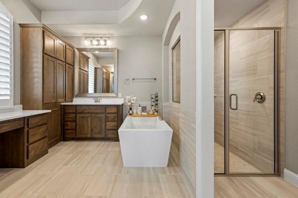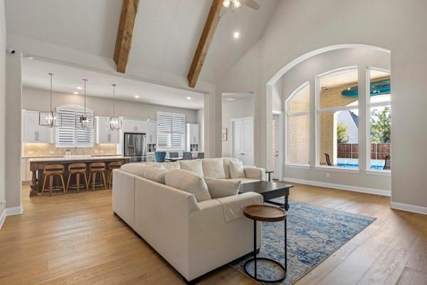 This north-facing estate is a showcase of refined elegance, thoughtfully staged and photographed to highlight its architectural beauty and timeless design. Inside, soaring ceilings and expansive living spaces set the stage for elevated living. Throughout the home, rich hardwood floors create warmth and sophistication, complementing the open flow designed for both grand entertaining and everyday indulgence. The residence offers four private ensuite bedroom suites and two additional powder baths, blending comfort with elevated style. Each suite serves as a private retreat, while the thoughtfully designed common spaces bring everyone together with ease. Step outside to your own private paradise — a resort-style pool and spa surrounded by lush landscaping on an expansive quarter-acre lot, perfect for both tranquil relaxation and unforgettable gatherings. From its ideal orientation to its curated finishes and resort-inspired amenities, this home is more than a place to live — it’s a statement of lifestyle.