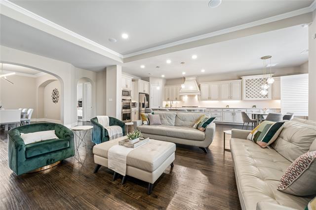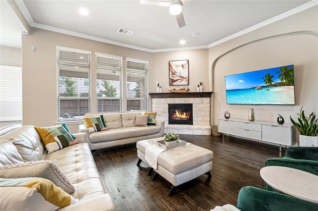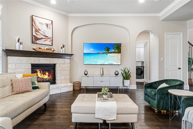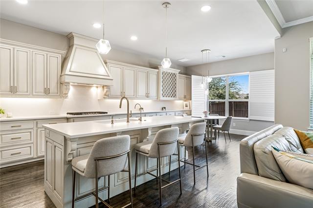Experience unparalleled luxury living at Phillips Creek Ranch! FRISCO ISD! This prestigious, impeccably maintained 4 bedroom, 4 bath home w a 3 car garage & EV charging showcases striking architectural design & meticulous attention to detail! Upon entry, you’re greeted by a dramatic curved staircase & soaring ceilings creating an unforgettable first impression! Rich hand-scraped hardwood floors, plantation shutters, designer lighting from West Elm, & recessed lights throughout! The dreamy chef’s kitchen is thoughtfully designed & renovated w quartz countertops, designer backsplash, antiqued ample cabinetry, extended breakfast bar, SS appliances, gas cooktop & generous walk in pantry! Flowing seamlessly into the spacious family room anchored by a beautiful fireplace centerpiece, creating a warm, inviting focal point for gatherings both intimate & grand. Built in speakers elevate the experience, making hosting effortless & refined. Private primary retreat w spa inspired bath w dual vanities, soaking tub, oversized glass enclosed shower, & expansive walk in closet. Guest ensuite on the main level offers ideal for multigenerational living-long term guests, while a dedicated study w French doors provides an executive level workspace. Upstairs, a spacious game room opens to a full media room, creating a true entertainment wing! Extended covered patio w recessed lighting & ceiling fan overlooks a beautifully maintained backyard! Addtl enhancements include whole home water softener, reverse osmosis drinking system, lightning rods, & wet laundry room w cabinetry. True North Texas luxury living miles from The Star, Legacy West, PGA, & Grandscape, 30 mins to DFW airports & walking distance to Pioneer Middle & Nichols Elementary! Phillips Creek Ranch amenities include front yard maintenance, ADT security, clubhouse, fitness center, 2 resort style pools, splash pad, parks, fishing pond, 100+acres of green space, 18miles of scenic trails, & vibrant monthly events.