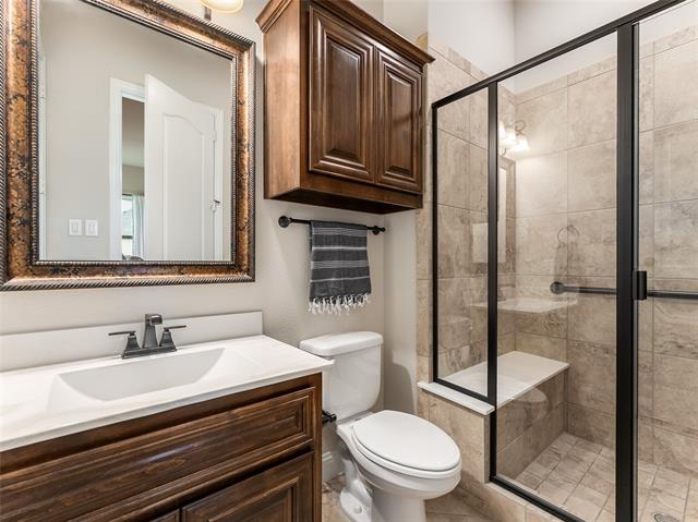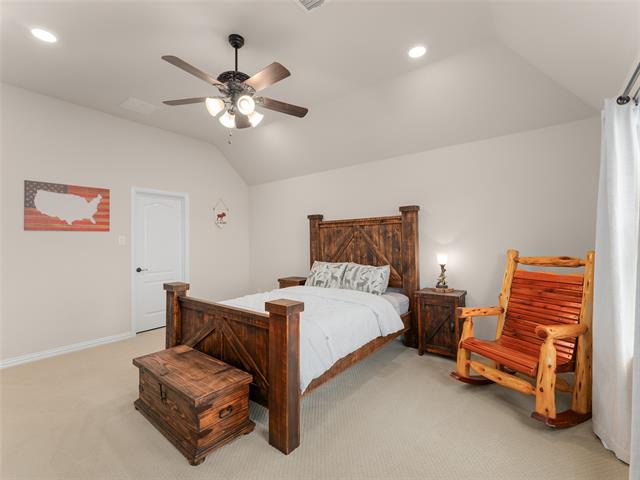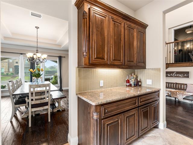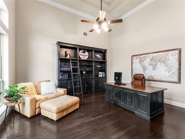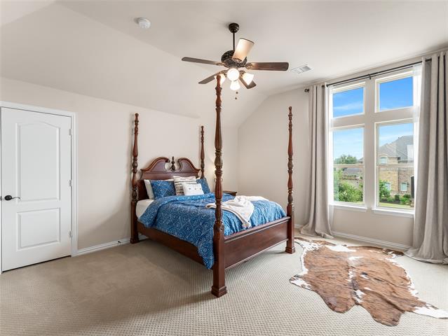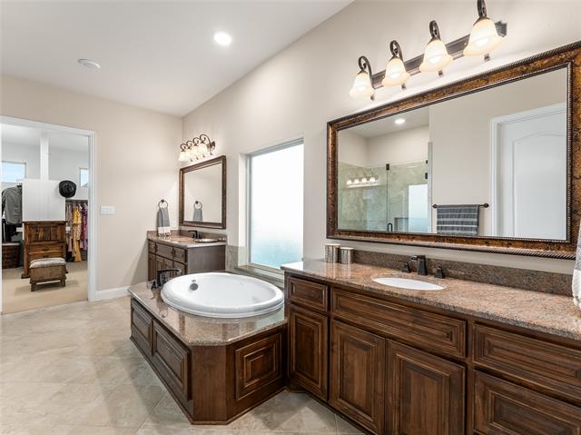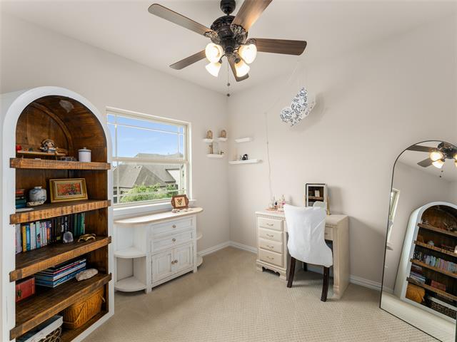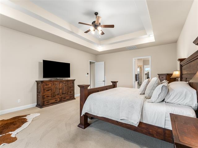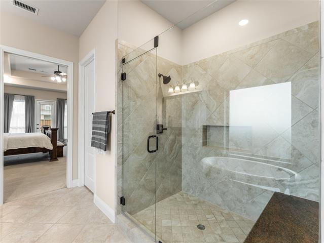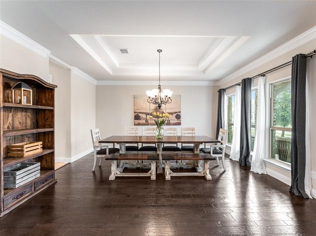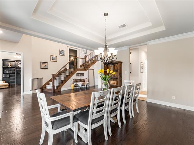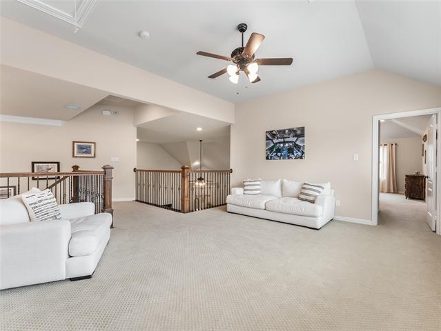 Welcome to this stunning Gallery Custom Home in the desirable Lakes of La Cima community, located within top-rated Prosper ISD. Situated on a spacious 0.333-acre lot, this 5-bedroom, 4.5-bath home offers 5,399 sq ft of luxurious living and a 3-car garage with a porte cochere and circular drive that make a grand first impression. Step through the elegant double iron doors to find rich wood floors, a formal dining room perfect for gatherings, and a dedicated office with soaring tray ceilings. Designed for entertaining, the home features a chef’s dream kitchen with an oversized island (extra storage front and back), built-in refrigerator, gas cooktop, and double convection ovens. You’ll also love the bonus prep kitchen space with gas stub—ideal for future customization. The expansive living room impresses with vaulted ceilings and a cozy gas log fireplace. The private first-floor primary suite offers a serene retreat with a spa-like bath, featuring double vanities, a garden tub, oversized shower, and a massive walk-in closet. Also on the main floor is a generous guest suite with walk-in shower. Unique to this home is a media room located between the first and second floors—perfectly tucked away for movie nights, sports, or gaming without disrupting the main living spaces. Upstairs, you’ll find a large game room, three oversized bedrooms, and two full baths, including another ensuite and a bonus room ideal for play, study, or storage. Enjoy evenings on the expansive covered patio—perfect for outdoor dining, lounging, or future entertaining—overlooking a spacious backyard with plenty of room to play or add a pool. Due to the home's proximity to the nearby fire station, the homeowners never lost power during the 2021 Texas Freeze—offering an added layer of peace of mind. Community amenities include pools, parks, fishing ponds, and trails. A truly exceptional home offering space, style, and comfort in a sought-after neighborhood.