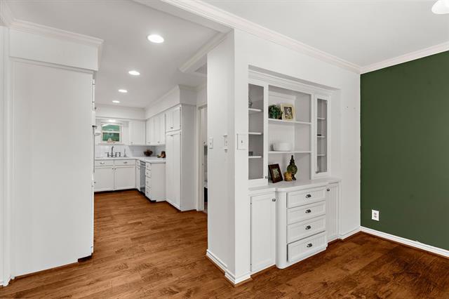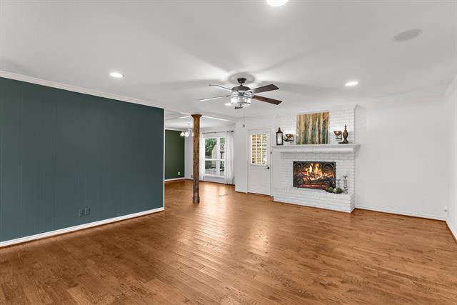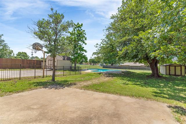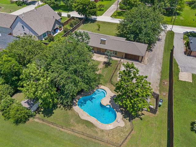 OPEN HOUSE SATURDAY, OCT 11, 2:00-4:00PM! Updated, single story home with hand-scraped hard wood floors, built-ins throughout, and an oversized game room, on over ½ an acre lot with a refreshing swimming pool, extended driveway, and no HOA, offering a quiet and slow-paced country lifestyle, yet located in the heart of Prosper, minutes to numerous shops and restaurants. The cozy and inviting living room offers a stunning, floor-to-ceiling gas fireplace, complete with a classic mantel. Host dinner parties in the designated dining room, featuring built-in cabinets with drawers and open shelving—ideal for storing and displaying dinnerware, and a large window offering a serene view of the backyard and pool. The galley kitchen features warm wood floors and crisp white cabinets that create a bright, clean aesthetic. Entertain or relax in the game room, transformed from the original garage space, with wood floors, crown molding, a generous size and versatile layout, this room offers endless possibilities for games, hobbies, or casual hangout space. The spacious primary bedroom offers a peaceful retreat featuring wood floors, a large window, and a generous walk-in closet offering ample storage for wardrobe and accessories. The private en suite primary bathroom includes a vanity with ample drawer storage, a granite countertop with under mount sink, and separate shower. Bedrooms 2, 3, and 4 each offer a generous closet and built-in desk for studying or working remotely. The full bathroom includes a granite countertop, undermount sinks, a shower-tub with tile surround, and large linen closet. The expansive lot, over ½ an acre, lush with mature trees, provides ample shade and a serene setting. A sparkling swimming pool invites relaxation and recreation, while a convenient parking pad offers additional off-street parking and a basketball goal. Whether you're entertaining or enjoying a quiet moment outdoors, this property provides everything you need for a peaceful retreat.