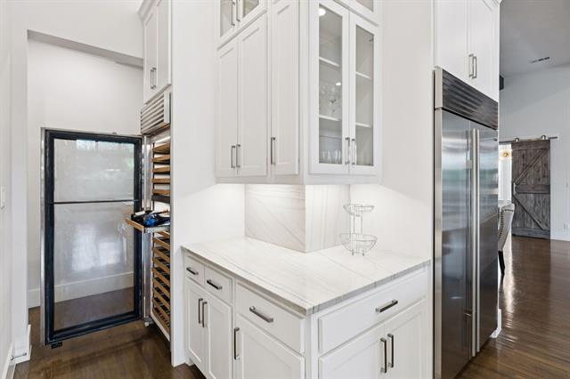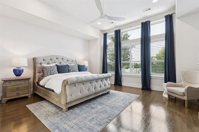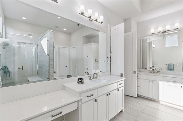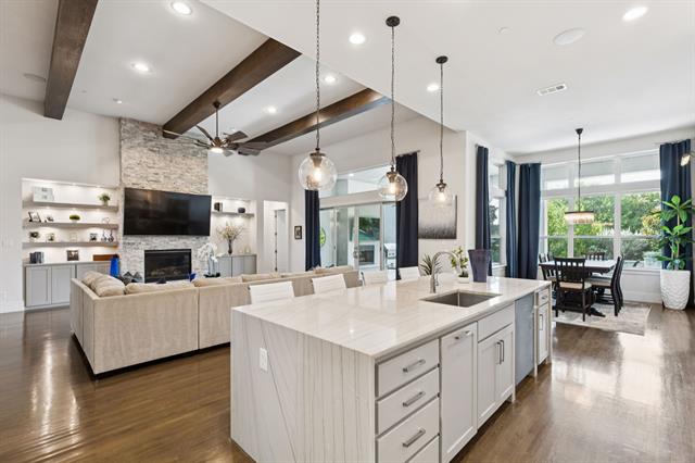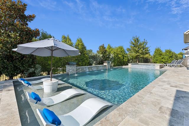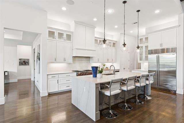 Luxury, comfort, and function come together in this Stunning Single-level custom home offering 5 bedrooms, a study, game room, media room, and two oversized 2-car garages. From the moment you enter, soaring ceilings, rich wood floors, and expansive windows fill the home with natural light and set a tone of refined elegance. The heart of the home is the showpiece kitchen featuring a dramatic waterfall quartz island, professional-grade appliances, an oversized wine chiller, glass-front cabinetry for displaying your finest pieces, and a huge walk-in pantry. The open layout flows seamlessly to spacious living and dining areas, creating an ideal space for entertaining or relaxing with family. The owner’s suite is a private retreat with a spa-inspired bathroom boasting a walk-thru shower, stand-alone soaking tub, and two large walk-in closets. Secondary bedrooms with ensuite baths, are generously sized, offering comfort for family or guests. Step outside to your own private resort. A gorgeous pool and spa with water features, dramatic fire bowls, and a state-of-the-art water chiller ensure perfect swimming temperatures year-round. Enjoy evenings by the fire pit or gather under the expansive covered patio with its own fireplace and built-in grill. Every detail of this home was designed for both beauty and function inside and out. Located in a upscale boutique community in the highly sought after Prosper ISD. Close to shopping, dining and minutes from the PGA, this property delivers an unparalleled lifestyle for the discerning buyer.