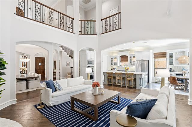 Introducing an updated luxury residence in highly sought-after Villages of Stonelake Estates, designed for today’s lifestyle with the flexibility for multi-generational living, with two bedrooms suites on the 1st floor. Featuring 6 bedrooms, 4 full baths, two living areas, a private office, and a media room, this home offers both sophistication and versatility. Inside, you’re greeted by solid hardwood floors and a thoughtfully reimagined interior. The chef’s kitchen showcases a 6-burner gas cook-top with downdraft ventilation, double ovens, full size and beverage refrigerators. The statement island, modern cabinetry, and premium finishes—perfect for gathering and entertaining. All bathrooms have been stylishly renewed with finishes aligned to today’s most desired standards, including the spa-worthy primary suite with soaring vaulted ceilings, a freestanding tub, and a custom-fitted closet. The home’s seamless floorplan balances openness with defined spaces, creating the ideal setting for family living or hosting. Upstairs, flexible bedrooms and the media room offer privacy and recreation, while the dedicated office ensures productivity at home. Step outdoors to your private retreat: a resort-inspired pool, covered patio, and fully equipped outdoor kitchen make entertaining effortless. A three-car garage—with a two-car bay plus separate single stall—adds function and convenience. Positioned within top-rated Frisco ISD and moments from shopping, dining, and major thoroughfares, this home pairs luxury finishes with an unbeatable location. **Virtual Tour and Floor Plan Available**