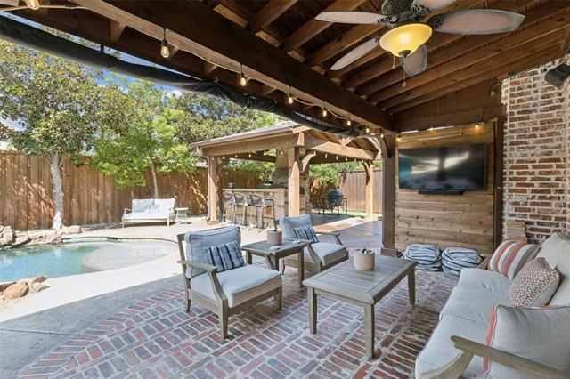 ** OPEN HOUSE • Sun, March 22nd, 2pm to 4pm •• Designed for modern living and effortless entertaining, this updated Stonelake Estates home offers exceptional space and flexibility. With 6 bedrooms, 4 full bathrooms, two living areas, a private home office, and a dedicated media room, this home is ideal for multi-generational living, remote work, and entertaining. Unlike many homes in the neighborhood, this property has been comprehensively renovated with today’s buyers in mind. The chef’s kitchen features a large center island, modern cabinetry, upgraded appliances, and designer finishes, while all bathrooms have been fully updated to current luxury standards. The primary suite showcases vaulted ceilings, a spa-inspired bath with a freestanding soaking tub, dual vanities, and a custom walk-in closet with built-ins. Throughout the home, hand-scraped hardwood floors, abundant natural light, and a functional open layout create a refined yet inviting atmosphere. Multiple flexible living spaces provide options for family living, guest accommodations, and home entertainment. Outdoors, enjoy a private resort-style backyard featuring a sparkling pool, covered patio, and fully equipped outdoor kitchen—ideal for year-round entertaining. The three-car garage, with a two-car bay plus a separate single-stall garage, provides excellent storage and versatility. Located in highly rated Frisco ISD and minutes from premier shopping, dining, parks, and major highways, this home offers the perfect balance of luxury, location, and move-in-ready convenience. This exceptional Stonelake Estates property delivers timeless style, thoughtful updates, and true turnkey living. Schedule your private showing today. **Check out the Virtual Tour and Floor Plan**