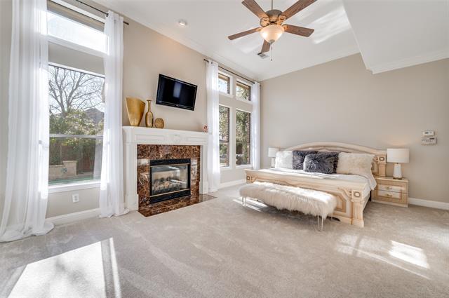 Buyer financing fell through - Priced to Move! Welcome to luxury living at Shady Point. Nestled on a corner lot, this custom residence impresses immediately with a grand staircase, soaring ceilings, and stunning travertine flooring. The light-filled, expansive floor plan is an entertainer's dream. A formal dining room and living area share a striking fireplace. A comfortable sitting area transitions seamlessly into the family room, which captures breathtaking views of the spectacular outdoor pool and spa through a massive wall of windows. This masterfully planned home offers exceptional first-floor living, featuring a private Primary retreat and a second bedroom or study with an ensuite bath, ideal for guests or a home office. The second story is dedicated to family and recreation, with three additional generous bedrooms, an expansive media room, a versatile workspace, and a large game room that opens to an outside sitting area. Further enhancing entertaining, a dramatic spiral staircase leads from the upstairs balcony directly down to the private pool and spa oasis. The resort-style backyard features a spacious covered patio and grilling area, perfectly framed by the family room's wall of windows, overlooking the large pool. A separate, tranquil patio oasis is tucked away adjacent to the study and second bedroom for peaceful relaxation. Shady Point represents the best in custom luxury living. Recent updates include new carpet, paint and lighting througout. Enjoy nearby Arbor Hills Nature Preserve, top-rated Lewisville ISD schools, and effortless access to 121 and the Dallas North Tollway—the perfect blend of prestige and convenience.
