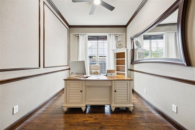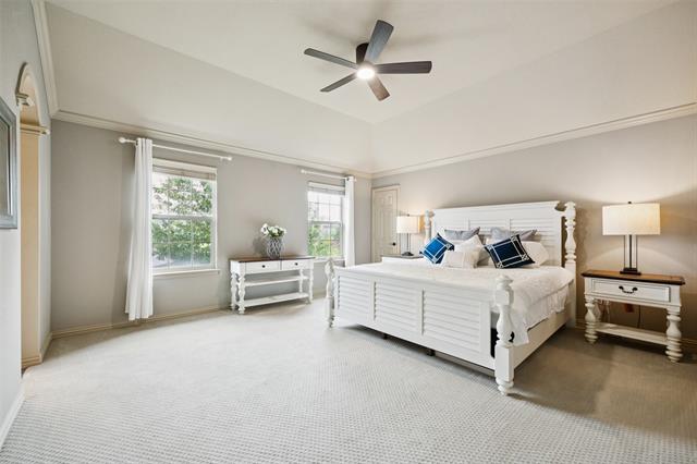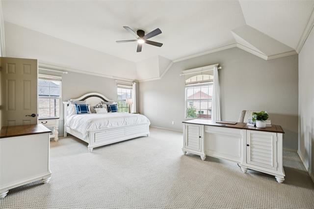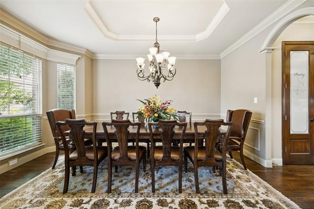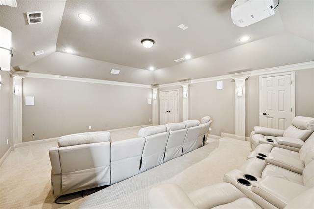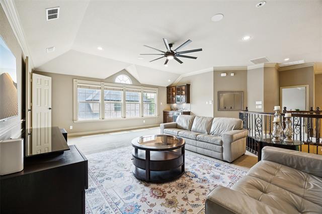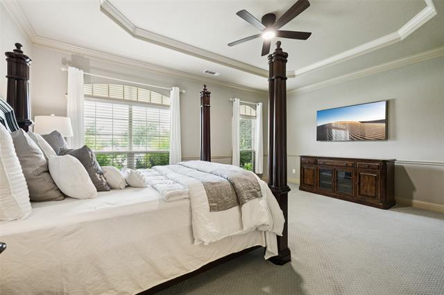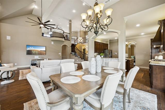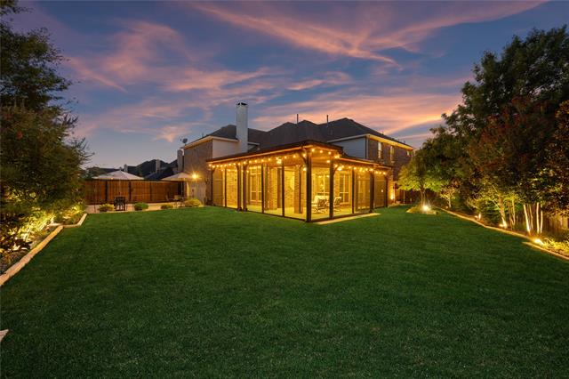 Stunning, Stately and Spacious home built by First Texas Homes on a Premium cul-de-sac lot, is immaculately maintained and an extensively upgraded residence nestled in Frisco’s highly sought-after, amenity-rich Village Lakes community. Showcasing custom touches throughout, you’ll find elegant crown molding, striking double front doors, and real hardwood flooring in the main living areas. A smart layout upgrade connects the office directly to the primary suite closet. Enjoy year-round outdoor living on the screened-in patio, with a motorized gate enclosing the extended 2-car garage. Additional features include a central vacuum, whole-house water filtration, tankless water heater, epoxy-coated garage floors, and lush, professionally designed landscaping with a modern rectangular frame water curtain fountain illuminated by color-changing lights. Upstairs boasts a spacious game room with full wet bar and an extra-large media room with Epson projector and specialized viewing wall. Second primary suite located upstairs. The chef’s kitchen features an oversized island, and the home offers surround sound, intercom system, indoor-outdoor cameras, and mounted TVs included. Upgraded Zoysia Zeon grass. Community perks include a pool, park, and lively neighborhood gatherings—all minutes from H-E-B, Downtown Frisco, the library, shopping, and dining. Schedule your private showing today!