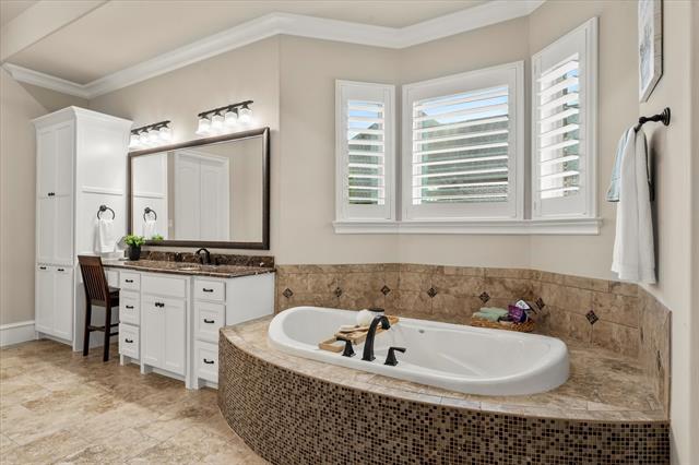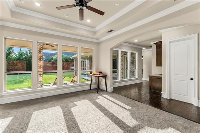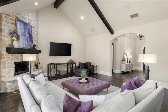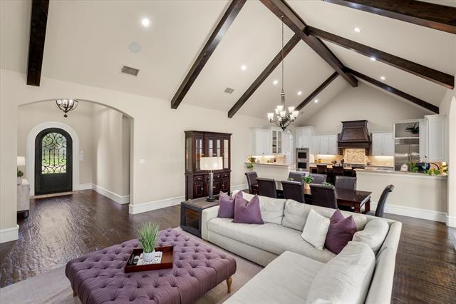 Exquisite Custom Dave R. Williams Home in Whispering Meadows – Prosper, TX! Welcome to your luxury dream home in the heart of Prosper! Nestled on a private cul-de-sac in the highly sought-after Whispering Meadows community, this one-story masterpiece spans 4,559 sq. ft. and showcases timeless craftsmanship, elegant design, and thoughtful details throughout. Step inside and be captivated by the open, light-filled layout accented with wood beams, rich wood flooring, plantation shutters, and custom built-ins that elevate every room PLUS MORE. This home offers 5 spacious bedrooms, 5.5 bathrooms, office, a media room, game room, and a rare 4-car garage, ensuring space and comfort for both everyday living and entertaining. The chef’s kitchen is a true showstopper, featuring freshly painted cabinetry, an oversized island, double ovens, a Sub-Zero refrigerator, and a Wolf gas cooktop. A secondary prep sink, extensive counter and cabinet space, and an impressive walk-in pantry with room for an additional refrigerator make it every cook’s dream. The wet bar—complete with a wine fridge and icemaker—adds another layer of sophistication. Retreat to the luxurious primary suite that is oversized for comfort plus extensive upgrades throughout the master bath. DREAMY! The utility room, thoughtfully designed with abundant cabinetry, counters, and a sink—large enough to double as a bonus space. Additional highlights include a mud bench, custom hallway bookcase, and upgraded finishes in every bathroom. Sitting on just under an acre, the expansive lot offers endless possibilities—plenty of space to create your ultimate backyard oasis with a pool, garden, or outdoor living features. The extended back patio provides a perfect spot to relax or entertain. From its impressive curb appeal to its countless upgrades, this home truly has it all. Experience luxury living at its finest—schedule your private tour today and see why this Prosper gem is the one you’ve been waiting for.