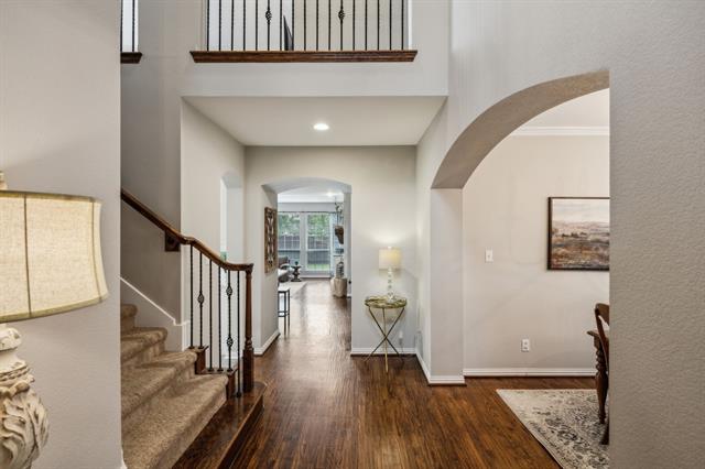 Welcome to your dream home in the heart of Prosper, nestled on a beautiful lot adjacent to greenbelt and serene creek. This stunning Highland home seamlessly combines modern updates with classic charm, making it the perfect oasis for both relaxation and entertainment. As you step inside, you’ll be greeted by an inviting foyer that sets the tone for the rest of the home. One of the standout features of this property is the recently updated kitchen, designed for both function and style. Equipped with sleek appliances, ample counter space, and contemporary cabinetry, this kitchen is a culinary enthusiast's delight. The open layout flows effortlessly into the adjoining living areas, making it ideal for hosting family gatherings or cozy nights in.The main floor boasts a spacious primary bedroom, offering a private sanctuary where you can unwind after a long day. This luxurious retreat features an en-suite bathroom complete with a soaking tub and a separate shower. Adjacent to the primary suite, you'll find a formal dining room and dedicated office space. Upstairs you will discover 3 bedrooms and 2 bathrooms, game room and a cozy media.Step outside into your backyard and experience the true essence of outdoor living. This private oasis is perfect for entertaining, featuring a outdoor kitchen where you can grill and serve meals while enjoying the beautiful surroundings. The vast yard offers tons of privacy, making it an ideal setting for summer barbecues, festive gatherings, or simply enjoying peaceful evenings under the stars. This Highland home truly has it all: modern updates, spacious living areas, and an incredible outdoor space .Don’t miss your chance to make this stunning property your forever home!