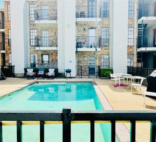 Affordable Poolside Living with Plano ISD Access! This beautiful first floor condo is perfectly situated in desirable North Dallas. This condo offers both comfort and style in a fantastic location. Enjoy the convenience of living in a well-maintained community with access to highly rated Plano ISD. Located adjacent to the community pool, you'll enjoy a private patio with serene views of the pool area. Step inside to discover luxury vinyl flooring throughout and neutral paint that creates a bright and inviting atmosphere. The kitchen features white cabinets and appliances, ideal for both cooking and entertaining. The living room is highlighted by a brick wood-burning fireplace, adding a cozy touch to the space. The large bedroom includes a generous walk-in closet and direct access to the patio, which also provides extra storage. Close proximity to freeways, entertainment, shopping, Central Market, UTD, and restaurants. Parking spot 108.