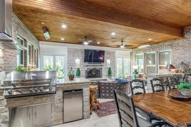 Welcome to this meticulously kept SINGLE STORY charming home by Darling Homes w 3-car garage located across from a scenic greenbelt in The Canals at Grand Park! This home offers luxury and over-the-top upgrades throughout. Open concept floor plan with hand-scraped hardwood floors from the foyer through the study, living & kitchen areas. The chef’s kitchen features white shaker cabinets, a custom vent hood, gas cooktop, double ovens, stainless steel appliances and a large island for entertaining. Two kitchen pantries, a separate laundry room & mudroom with built-ins provide excellent storage. The living and dining areas flow seamlessly into a newly constructed entertainer's Dream den, offering an add'l 634 sq ft equipped with wood burning fireplace, chimney, Central air & heat, BULL 6 burner gas grill & vent hood, 2 beverage fridges, ceiling fans, space heaters, recessed lighting, 2 folding Marvin doors, rich stone flooring and ample bar seating. Other features of this home include a split bedroom layout, spacious master & secondary bedrooms, walk-in closets, and private baths. A private double door study offers flexible uses for music or fitness. Other home upgrades include a new Class 4 shingle roof, gutters & vents; Generac 26KW whole-home generator with 200 AMP automatic transfer switch; artificial turf backyard with 3 hole putting green; new stone flowerbeds & new landscaping; 6 newly planted trees; dusk to dawn front porch & landscape lighting; remote-controlled motorized driveway gate;newly installed garage doors, motors & fans; epoxy-coated garage floors; newly installed side yard fencing plus extensive restaining; 3 newly installed chandeliers & ceiling fans. HOA maintains front yard landscaping for easy living. Frisco ISD “A†Rated schools. Optional Founders Hall membership offers clubhouse, pools, and fitness center. Minutes to The Star, Legacy West, PGA Headquarters & Dallas North Tollway. This immaculate, move-in ready 1 story beauty is waiting for you!