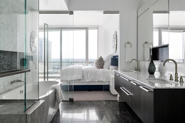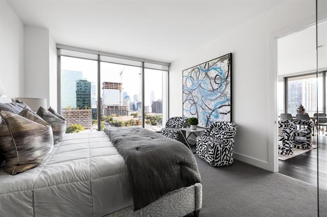 Over 85% of the residences at Bleu Ciel have been sold, and we are fast approaching the close-out of developer homes. Don't miss your last chance to embrace the coveted Harwood lifestyle, where parks, exquisite dining, and direct access to the Katy Trail await you. Imagine savoring breathtaking views of Dallas from your own expansive terrace, complete with a cozy fireplace—an exclusive offering at Bleu Ciel. This stunning 33-story masterpiece, designed by renowned Parisian architect Jean-Michel Wilmotte in collaboration with HDF, redefines modern elegance. Residents enjoy a wealth of exclusive amenities, including two junior Olympic-sized pools, a poolside kitchen for entertaining, a rejuvenating spa, and an inviting wine lounge complete with a wine room and storage. For those who appreciate sophistication, there are two opulent executive boardrooms equipped with cutting-edge audio and visual technology, alongside a stylish social room featuring a library. Additional conveniences include private garages, a fully-equipped fitness center, a serene yoga room, a designated pet area, and 24-7 concierge and valet services to cater to your every need. Experience sky-rise living at its most enchanting, showcasing floor-to-ceiling glass windows, luxurious Porcelanosa cabinetry, and top-of-the-line Miele appliances. Your dream lifestyle awaits at Bleu Ciel.