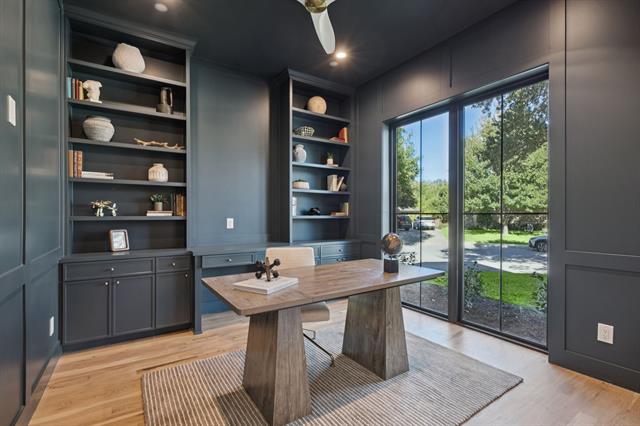 Built by Madison Custom Homes, this brand-new 5-bedroom, 7-bath residence showcases over 4,800 square feet of refined living space with exceptional craftsmanship and top-tier materials. Engineered for longevity, the home features a post-tension foundation with soil injection by Encyon Engineering, 2x6 framing, full closed-cell spray foam insulation, Advantech subflooring, and is fully wrapped in the Huber ZIP System for a seamless, energy-efficient air and moisture barrier that replaces traditional housewrap and roofing felt. The thoughtfully designed layout includes a dedicated home office with custom built-in cabinetry, as well as en suite bathrooms for all five bedrooms. A second en suite bedroom is located downstairs, perfect for guests or multi-generational living. Interior finishes include Level 4 and 5 smooth walls, White Oak Select true hardwood floors (no laminate or engineered), Taj Mahal natural stone countertops, and custom white oak cabinetry. All trim is solid pine with no MDF. High-efficiency systems include dual 5-ton American Standard HVAC units, a tankless water heater with recirculation, Andersen thermally broken windows, and custom iron exterior doors. Additional upgrades include an EV-ready garage with a Level 2 charger, half-round gutters, a commercial-grade French drain system, and professional-grade appliances. A true showcase of quality construction and timeless design.