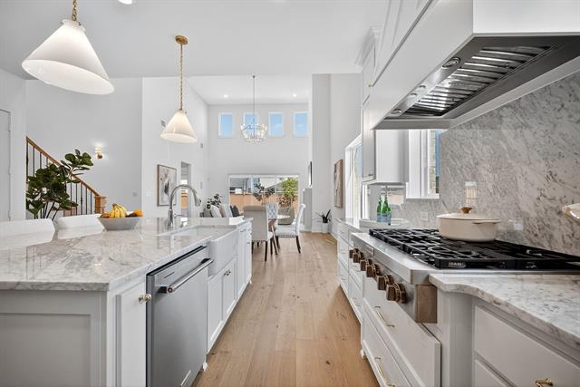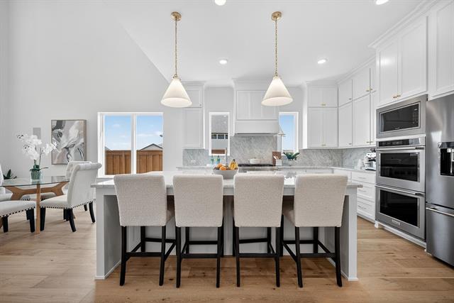 Every detail of this 4-bedroom, 4-bath Frisco home has been curated for style and sophistication. Natural light pours through open spaces, illuminating wide-plank White Oak floors that sweep across both levels and a dramatic spiral staircase. The chef’s kitchen is a showstopper — ceiling-high cabinetry, a marble backsplash and countertops protected by Stoneguard, and a luxury KitchenAid appliance package complete with a 6-burner range and double oven. The cast-stone fireplace and designer lighting create a warm, inviting atmosphere perfect for entertaining or cozy nights in. Retreat to your primary suite, where the marble flooring and frameless shower turn your morning routine into a spa experience. Every bathroom showcases frameless glass showers, custom lighting and mirrors, and high-end finishes. Upstairs, unwind in the pre-wired media room, or enjoy the larger-than-expected backyard — complete with gas line and TV outlet for outdoor living year-round. The home is fully equipped with Bluetooth speakers throughout, a HomePro security system, and luxury custom curtains in bedrooms and baths. Every corner of this residence whispers quality and attention to detail — a rare combination of luxury, function, and thoughtful design in the heart of Frisco.