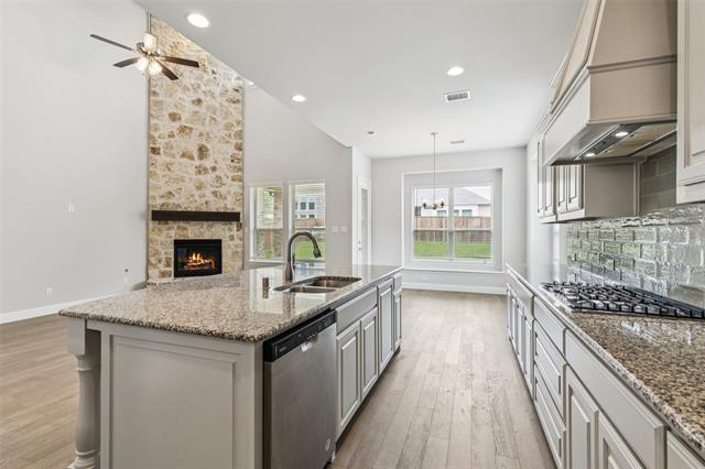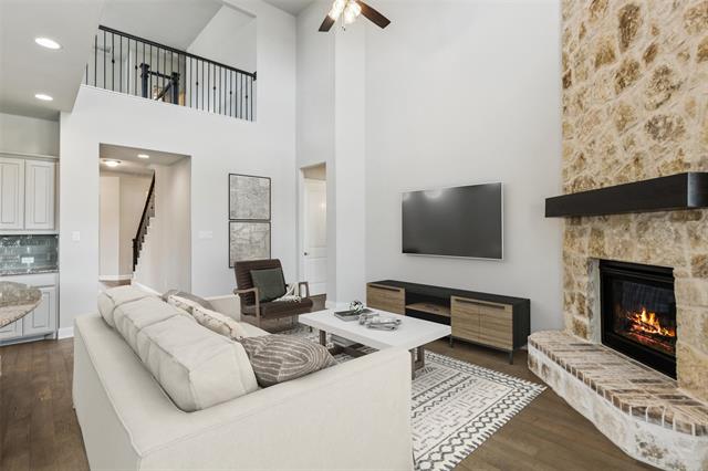 Mortgage savings may be available for buyers of this listing. This magazine worthy home offers show-stopping appeal & numerous upgrades that will put this gem at the top of your list! Once inside, you are welcomed by an abundance of natural lighting, grand spaciousness, soft neutral colors, and beautiful wood floors that flow throughout the main areas! The thoughtfully designed living room showcases double story ceilings, wall of windows, floor to ceiling stone fireplace, and connects seamlessly to the gourmet kitchen, offering an open airy layout ideal for easy entertaining & socializing while cooking! Speaking of cooking----this gourmet kitchen shows like a model home & comes equipped with chef's grade stainless steel appliances, double ovens, gas burner cooktop & custom vent hood, a large center island, gorgeous granite, and designer backsplash! The main level split primary retreat allows for privacy, and features an ensuite with a walk-in closet, large walk-in shower, and even larger soaking tub to unwind after a long day. There is also a dedicated office, a guest bedroom and a full bath on the main floor, perfect for visitors or multigenerational living. Upstairs, you'll find two additional bedrooms, a full bathroom, an expansive game room, and a media room. Ample storage throughout the home ensures everything has its place. The oversized backyard will certainly be the setting for many future gatherings, featuring a covered patio & tons of yard space for a trampoline, playscape, and garden for all those green thumb enthusiasts. Close proximity to the lake & about 2 miles from Sapphire Bay Marina for fun-filled weekends on the water. Conveniently located near major routes and just minutes from The Harbor—offering an exciting mix of restaurants, shopping, and vibrant entertainment options—this rare turnkey opportunity won’t last long.