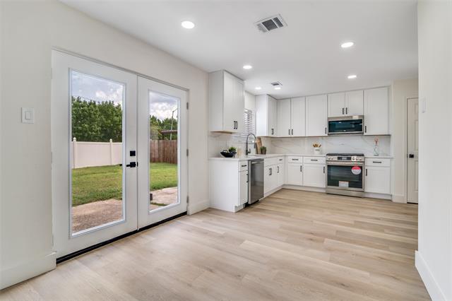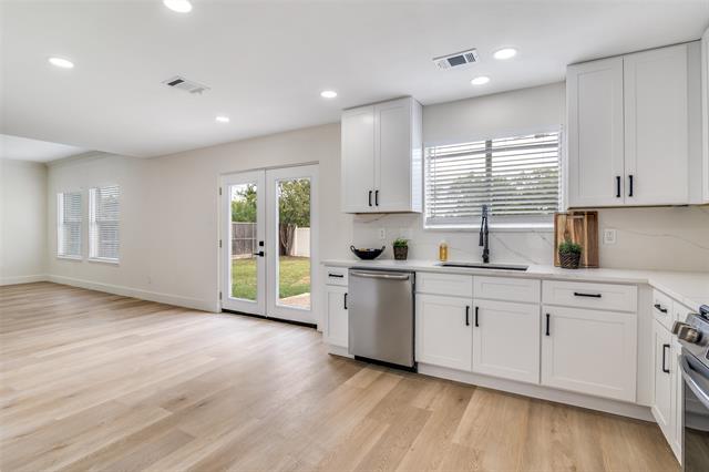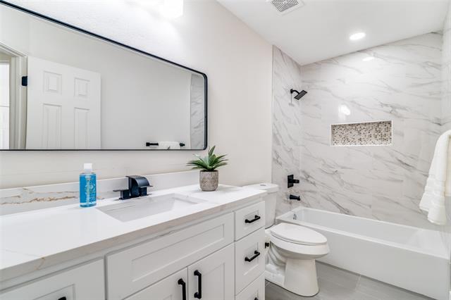 Step into modern elegance with this fully renovated 4-bedroom, 3-bath home in sought-after Rowlett. Bright, open-concept layout features two living areas, formal dining, and luxury vinyl plank flooring throughout. The designer kitchen boasts quartz countertops, stainless steel appliances, shaker cabinets, and matte black finishes. Fresh interior paint, luxury vinyl plank flooring, and designer lighting bring a modern touch to every room. Upstairs, the oversized primary suite offers a bonus sitting area and a spa-like bath with dual vanities, soaking tub, and a frameless glass shower. Foundation was repaired in June 2025 with a transferable lifetime warranty and engineer’s report available for peace of mind. Enjoy a spacious backyard with gated parking, fresh exterior paint, and plenty of room to entertain. Conveniently located near Lake Ray Hubbard, dining, and easy highway access — this one is a must-see. Ask about the lender-paid 1-0 interest rate buydown available through our preferred lender. Subject to lender approval.