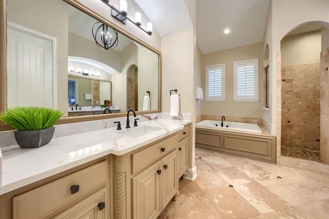 Experience effortless luxury living in the heart of East Plano, moments from world-class entertainment and premier amenities. Thoughtfully Renovated Custom Residence. Recently transformed into a refined modern Mediterranean aesthetic, this custom home blends timeless architecture with elevated, cohesive design. Anchored by Taj Mahal quartzite surfaces throughout the kitchen, baths, office, and bar areas, the renovation delivers rare material continuity and a sophisticated, high end finish. The kitchen and primary suite serve as centerpiece spaces, beautifully updated for both everyday living and entertaining. New countertops, backsplashes, all new designer lighting and ceiling fans, contemporary black fixtures, and refreshed finishes create a clean, modern atmosphere while preserving the home’s custom character. Handscraped hardwood floors extend through the main living areas and primary suite, while new carpet has been installed in all secondary bedrooms, office, wine cellar grotto, and media room, offering comfort and a fresh, MOVE IN READY feel. A private office with fireplace and custom built ins, wine grotto with its own fireplace, dedicated media room, second-floor wet bar, and expansive flex bedroom provide exceptional versatility. Major recent capital improvement includes a full roof replacement, delivering meaningful long term value and peace of mind. Additional features include a courtyard fountain, three car garage with epoxy flooring, peaceful lake and fountain views, and a location just minutes from Grandscape and Legacy West with convenient access to SH 121 and the Dallas North Tollway, approximately 20 minutes to Love Field or DFW Airport. Now available at an exceptional value in one of the area’s most desirable locations.