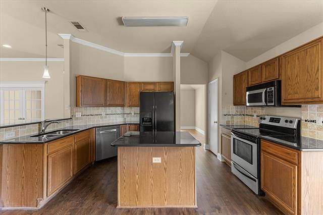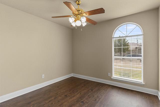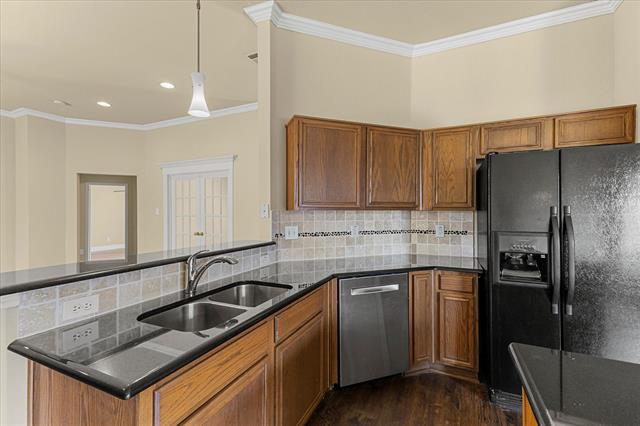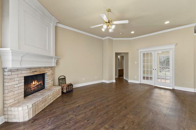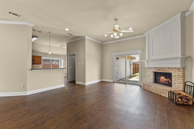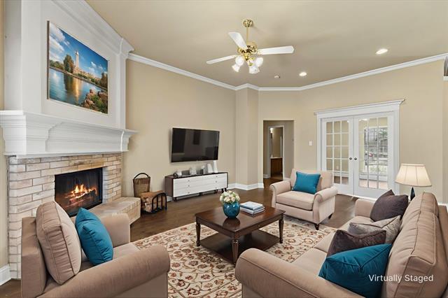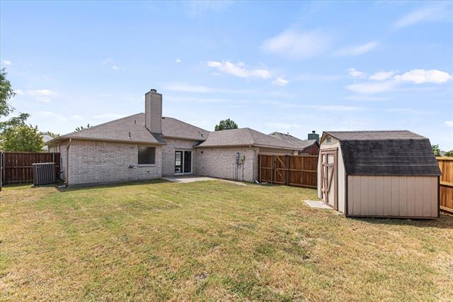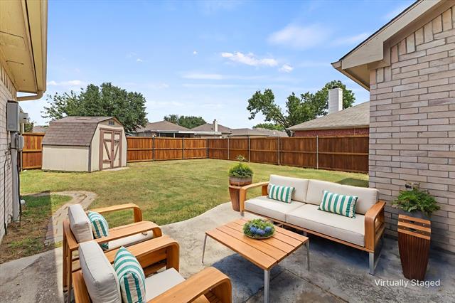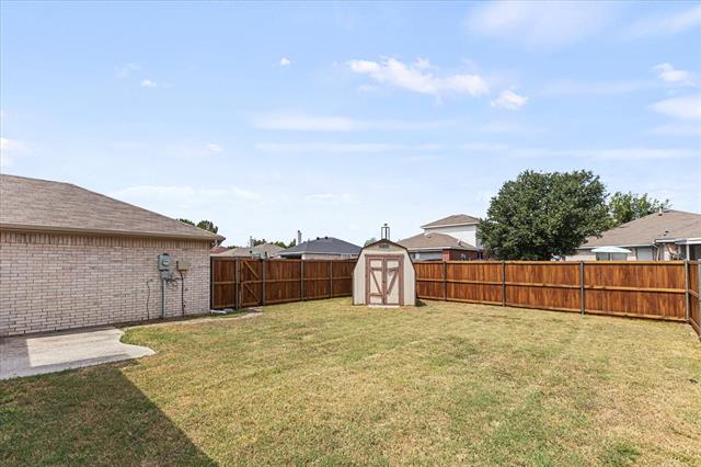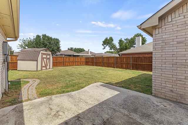 PRICE IMPROVEMENT!! Imagine celebrating the holidays in this gorgeous move-in ready home, complete with a fridge, washer, dryer and shed!! This move-in ready beauty showcases a balanced blend of comfort and function. It features crown molding, freshly touched-up neutral paint and decorative ledges. Recently installed luxury vinyl plank flooring flows throughout the common areas and bedrooms, well-suited for a busy lifestyle. The formal dining room is a versatile space that could also be used as a home office or second living area. The island kitchen offers an abundance of cabinetry, granite countertops, tumbled stone backsplash with a mosaic accent strip, stainless appliances including a smooth top range and Bosch dishwasher, pantry and sunny breakfast nook with a cozy window seat. The refrigerator can stay! The warm and inviting Family Room, with a corner wood-burning fireplace, is the heart of the home. The generously sized primary suite boasts an ensuite bath with dual sinks, sit-down vanity, soaking tub, recently renovated separate shower and a large walk-in closet. The secondary bedrooms both have ceiling fans and share the hall bath. Bedroom 2 would make a perfect home office, craft or playroom with its French doors. The backyard is ready for outdoor entertaining with its open patio ideal for grilling. The backyard is large enough to accommodate areas for kids, pets and adults! There is even a handy storage shed for your tools and lawn equipment. It's in close proximity to I-30, SH-66 and PGBT, allowing different options for your commute. Conveniently located near schools, parks, shopping, dining, nature areas, Sapphire Bay and beautiful Lake Ray Hubbard. Updates include: wood-look LVP flooring, cedar privacy fence (2025); primary bath shower enclosure and frameless glass door (2024); gutters (2022); foundation repairs with transferrable lifetime warranty (2019); HVAC system (2017); roof (2016).
