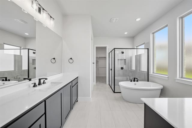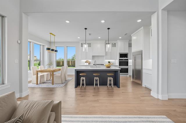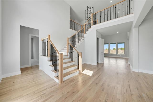 This popular open-concept home features a dramatic two-story entry and family room. With 5 bedrooms and 4.5 bathrooms, there’s plenty of space for the whole family! The beautiful gourmet kitchen includes quartz countertops, upgraded built-in appliances, and a large walk-in pantry. The spacious master retreat features a charming window seat and a generously sized bathroom with an upgraded freestanding tub, a large shower, and a linen closet. A guest bedroom is conveniently located on the first floor, and the guest bathroom includes a walk-in shower. Upstairs, the game room and media room are situated together to create an ideal entertainment space. Additional upgrades include stunning nail-down hardwood floors throughout the downstairs, iron spindles on the second-floor overlook, box windows in the master bedroom and casual dining area, and an extended patio perfect for outdoor entertaining.