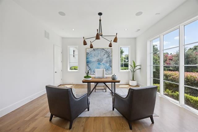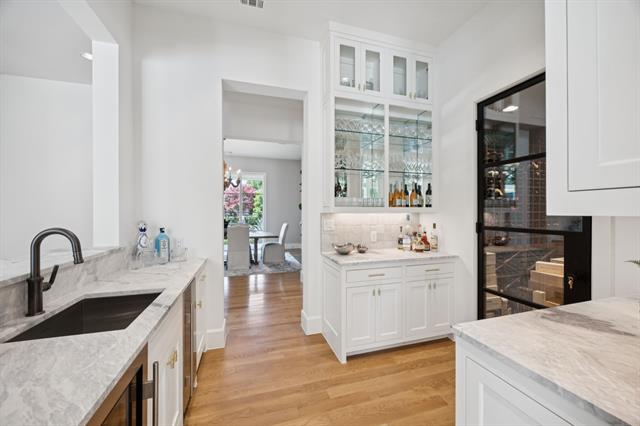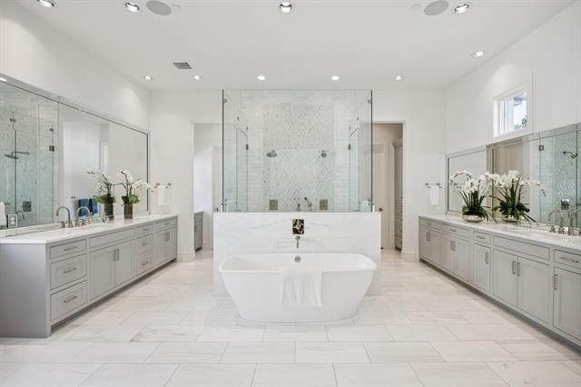 Situated on a beautifully landscaped and fully gated 1.12 acre lot in the heart of Old Preston Hollow, this Spanish inspired Mediterranean estate offers a rare combination of luxury, privacy, and modern convenience in one of the most sought-after neighborhoods in Dallas. Built in 2019, this transitional style home is perfectly suited for family living and entertaining with six bedrooms, multiple living spaces, and incredible outdoor entertaining. The main floor features formal dining, a dedicated office, wet bar with temperature controlled wine room, and a spacious family room with nine-foot windows offering sweeping views of the beautifully landscaped private yard. The primary suite with French doors opening to pool and spa as well as a guest suite are also on the first floor. The gourmet kitchen is a chef's dream, complete with a Sub-Zero fridge and freezer, a Wolf range with double ovens, multiple dishwashers, and a large island perfect for gathering. An additional living room is downstairs that opens to covered patio and creates a seamless space for indoor and outdoor entertaining. Upstairs features four additional ensuite bedrooms, a media room, game room with kitchenette, and home gym with sauna.Outside, the exquisite landscaped yard provides a tranquil retreat with a pool, spa, fire pit, and cabana designed by Pool Environments. The covered patio is perfect for grilling and dining outdoors, equipped with phantom screens and heaters so you can enjoy it year-round. The beautifully landscaped yard provides plenty of additional space for fun and even a pickle ball court if desired. A four-car garage with a private motor court adds to the property's exclusivity. Don’t miss this unparalleled opportunity to live luxuriously and privately in one of Dallas' most prestigious neighborhoods.