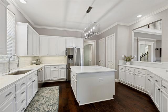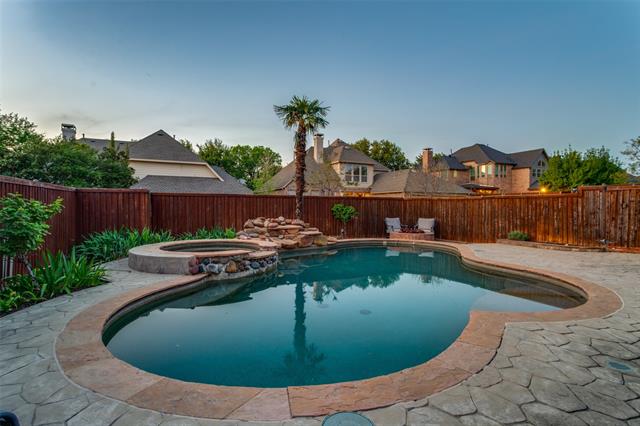 Located inside the exclusive guard-gated community of Starwood on a cul-de-sac, this custom Huntington Home offers convenience, privacy, space and comfort. With 5 bedrooms, 4 bathrooms, 3 living areas, and a 3-car garage, this home is both functional and adaptable. The grand entry welcomes you in with soaring ceilings and leads to formal dining and living spaces that can be used for a variety of purposes. At the heart of the home you'll find the living room complete with a statement gas fireplace and abundance of natural light offering beautiful views of the backyard. The upgraded eat-in kitchen features quartz countertops, a breakfast bar, ample prep space and a two pantries allowing for plenty of storage. The primary suite feels like a true owner’s retreat, with an oversized bedroom and beautiful bay windows overlooking the pool. The spacious ensuite bath offers a private escape with dual vanities, separate shower, jetted tub and spacious walk-in closet. A secondary bedroom downstairs is ideal for guests, nursery, gym or private home office. Upstairs, you’ll find three additional bedrooms each with walk-in closets, two full bathrooms, plus a generous living area that works perfectly as a game room, media room, or flex space. Step outside to a backyard designed for both personal enjoyment and entertaining with a sizable patio, sparkling pool, and relaxing spa. Conveniently located just minutes from Dallas North Tollway, 121, dining, retail, entertainment and more!