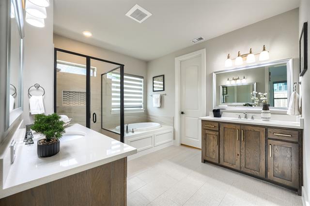 Welcome to 10508 Wintergreen Dr, Frisco, TX 75035 – a beautifully maintained Shaddock home featuring two primary suites and nestled in one of Frisco’s most desirable gated neighborhoods. Designed for both comfort and style, this residence is perfect for families and entertainers alike, with 5 bedrooms, 4 full bathrooms, and a versatile layout that offers two bedrooms and two baths on the main level, plus three bedrooms and two baths upstairs. Step inside to an inviting, light-filled interior with hand-scraped hardwood floors, soaring ceilings with automated power blinds, and designer finishes throughout. The gourmet kitchen showcases quartz countertops, updated lighting, stainless steel appliances, and ample cabinetry—all seamlessly flowing into the cozy living room with fireplace and backyard views. The main primary suite provides a serene retreat with a spa-inspired bath and walk-in closet, while a second primary suite upstairs adds flexibility for guests or multi-generational living. Secondary bedrooms are generously sized and adaptable for a home office, media room, or playroom. Outdoors, enjoy Texas evenings in the landscaped backyard with a covered patio—perfect for relaxing or dining al fresco. Situated within top-rated Frisco ISD and just a short walk to Independence High School, shopping, dining, and major highways, this home offers unmatched convenience in a prime location. Don’t miss your chance to own this exceptional Frisco home—schedule your private showing today!